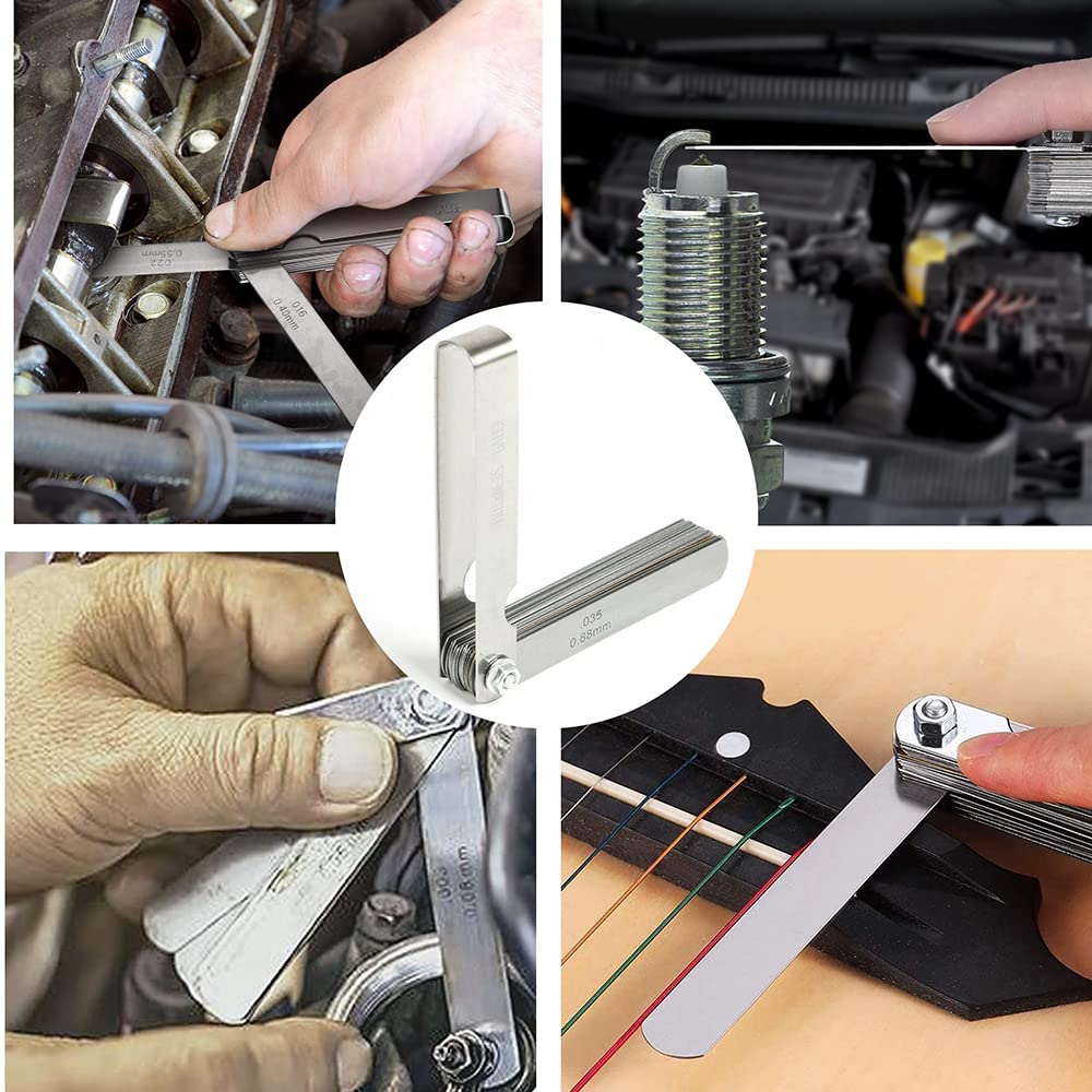 XPEX Jeu de cale d'épaisseur Jauge d'Épaisseur Métrique, Jauge de Palpeur Acier Inox 32 Lames Cuque Jauge D'épaisseur En Acier Inoxydable Jauge D'épaisseur Dentaire Jauge De Jeu Mécanique Le lot de 32 lames à double marquage est adapté pour les concepteurs, les ingénieurs et les mécaniciens pour mesurer l'épaisseur des jeux du robinet, des écarts de bougies, des jeux de roulement et d'autres endroits difficiles à atteindre Haute qualité: la jauge d'épaisseur est en acier inoxydable de haute qualité avec un revêtement lubrifiant pour éviter la rouille et la corrosion Matériau : fabriqué en acier au manganèse, chaque jauge de remplissage mesure la jauge d'épaisseur assurant une durabilité durable et le maintien de la... Avis chaleureux: il y a de l'huile antirouille sur la jauge d'épaisseur en acier inoxydable pour l'empêcher de rouiller, ne vous inquiétez pas à ce sujet métrique de 0,04 mm à 0,88 mm, pouces de 0,0015 à 0,035., Polyvalent: largement utilisé dans la construction, les magasins de chemin de fer, l'enseignement, les articles sanitaires en céramique, la mesure des écarts entre le pare-brise automobile, l'écart de moule et d'autres endroits difficiles à atteindre
