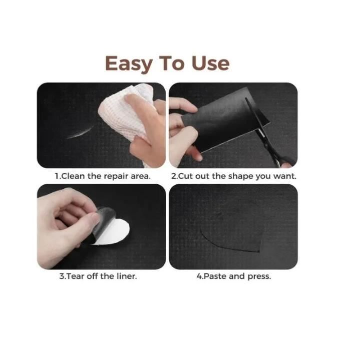 Souple, épais et facile à nettoyer pour une utilisation durable. Revêtement imperméable pour une meilleure protection contre les éclaboussures, surface résistante à la transpiration et aux taches, et revêtement anti-rayures pour une meilleure résistance à l'abrasion quotidienne. Ne cachez plus les rayures sur vos canapés ou sièges auto ! Nos patchs de réparation haut de gamme restaurent le cuir abîmé comme neuf sans effort. Adhésif Fort Restauration Invisible Patch Autocollant Réparation Cuir & Simili (100x50cm Simili Cuir Autocollant Durabilité:Cuir PU ultra-épais (épaisseur carte de crédit) avec un motif grain de litchi réaliste. Spécifications techniques:Matériau : cuir PU + adhésif acrylique non toxiqueLe forfait comprend :1× Patch de réparationConseils:La préparation est importante : nettoyez la surface, poncez les zones brillantes pour une meilleure adhérence. S'enlève proprement sans laisser de résidus. RÉPARATION INSTANTANÉE EN 3 ÉTAPES: Nettoyer, découper et coller: réparez les dommages en quelques minutes. Patch de réparation simili cuir Sa formule sans résidus ne s'écaille pas et ne jaunit pas avec le temps. Découpable à la forme souhaitée, il est idéal pour les accoudoirs incurvés ou les coins de sac! FINITION NATURELLE ET GUIDE DES COULEURS: S'harmonise parfaitement pour des réparations invisibles. Pièce de réparation durable pour cuir: cuir PU de qualité supérieure à texture litchi, imperméable, résistant à la transpiration et aux rayures. MTEVOTX Patch de Réparation en Cuir,Simili Cuir Autocollant,Rouleau... Simili Cuir Autocollant 40 x 150 cm, Kit Reparation Cuir pour Canapés... Assistant de réparation universelRépare les déchirures, brûlures et éraflures sur les canapés, les intérieurs de voiture, les sacs à main, les bagages et les matières synthétiques. Vérification des couleurs: l'éclairage influence la perception! Appuyez et perfectionnez : appliquez une pression ferme pendant 60 secondes, utilisez des livres comme poids pour les surfaces courbes. Comparez l'objet avec les images de notre galerie zoomable avant de le découper. Adhésif puissant et sans résidus : La colle industrielle assure une adhérence parfaite aux surfaces sans décollement. Coupe astucieuse: Découpez la zone endommagée de 2cm de plus que la zone endommagée.