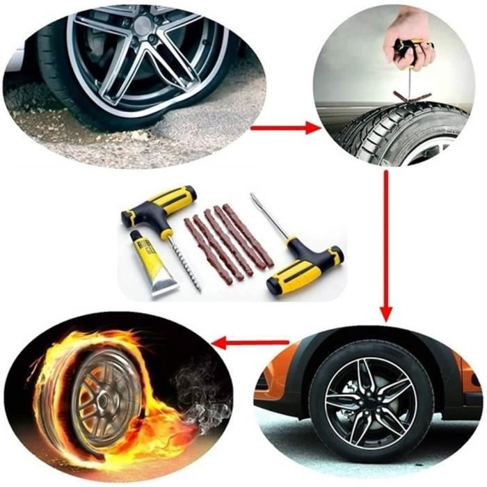 Givi/Oxford/Puig-tools/Kit de réparation de crevaison de pneus pour roues de moto, moto, moto, différents modèles Kit Dépannage Urgent Pneu Plat Kit De Réparation De Pneu De Voiture-Moto Plug Plug Tubeless De Réparation De Pneu Crevaison Accessoires De Voiture-Moto [62] - Auto Réparation Pneu Voiture Ce kit est très simple à utiliser, permettant de réparer les crevaisons sans avoir à retirer la roue. Les outils métalliques ergonomiques facilitent la prise en... Largement Utilisé: Ce kit est idéal pour réparer les crevaisons des voitures, motos, vélos Tubeless, tracteurs, quads et buggys. KIT RÉPARATION PNEU roue crevée tubeless crevaison mèche EUR 4,99... Solution Rapide: Un produit très utile et simple pour réparer les crevaisons n'importe où sans avoir à emmener la roue dans un atelier. Emballage Inclus: Notre kit de réparation de crevaison est composé de 5 mèches, 1pc outil en T en spirale, 1pc outil en T d'insertion.