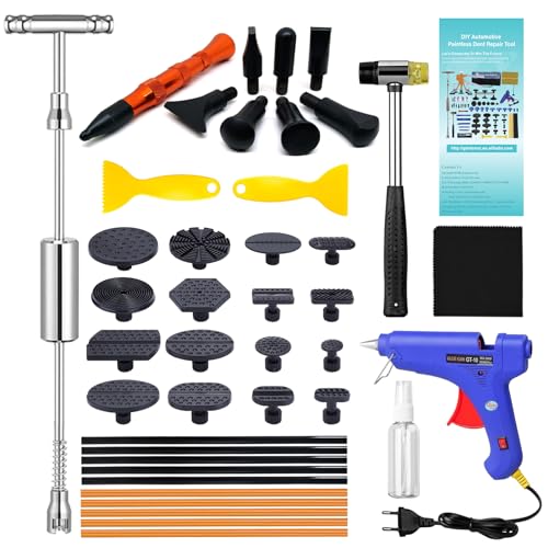Día y Noche - Día y Noche Set de reparación de abolladuras sin pintura 45 piezas Il convient aux débutants et aux professionnels, vous permettant d'économiser du temps et des efforts. Outil Réparation Bosse Moto Kit Débosselage Sans Peinture, PDR Outils Paintless De Réparation Carrosserie, DIY Réparer Les Bosses Dans Voiture, Moto Corps Et Réfrigérateur, Pour Les Bosses De Grande, Petite Et Moyenne, 82pcs Extracteur Bosse Carrosserie DIY Vous pouvez compter sur sa durabilité exceptionnelle pour réparer facilement les bosses, sans vous soucier des remplacements fréquents ou des déformations. Il est équipé d'un pistolet à colle thermofusible, de bâtonnets de colle, d'une spatule et d'une bouteille spray vide. Économisez du temps et de l'argent en évitant le besoin d'accessoires supplémentaires EN STOCK : Kit de réparation de bosses sans peinture, outils de réparation de carrosserie, kit de réparation de bosses avec pistolet à colle, bâtons de... Gagnez du temps et de l'argent sur les réparations avec cet outil polyvalent pour de nombreuses applications. Solution complète : avec un kit d'extracteurs de bosses de 20 pièces et des outils polyvalents, cet extracteur de réparation de bosses de voiture est un ensemble complet pour différents types de bosses et de rayures. Le point de contact en métal doux au toucher assure une réparation pratique, ce qui en fait un outil pratique et fiable pour tout propriétaire de voiture. Durabilité exceptionnelle : l'extracteur de réparation de bosses de voiture bénéficie d'une construction solide et , grâce à son utilisation de matériaux PP + acier inoxydable de haute qualité. Réparez toutes sortes de bosses : utilisez notre extracteur de réparation de voiture pour réparer facilement toutes sortes de dommages, des bosses de voiture aux portes, motos, machines à laver, réfrigérateurs, etc. Enlevez facilement les bosses à l'aide de notre extracteur de bosses de voiture !