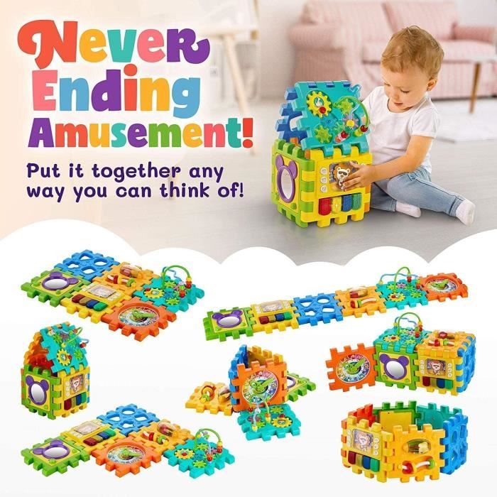 Il est idéal pour les petits doigts et permet l'apprentissage de différentes compétences, favorisant le développement de la motricité fine et de la coordination œil-main. Jouet Bebe 9 Mois Cube Occupé 6 En 1, Jouets Montessori Pour Tout-petits, Avion, Voiture, Jouet De Voyage, Activité Sensorielle, Planche Occupée, Jouets éducatifs D'apprentissage Pour Enfants Cube Activités Montessori Il peut être utilisé en voiture, en avion, en train, en bus, au restaurant, en déplacement et partout ailleurs. Il est fabriqué en ABS de haute qualité avec des bords polis, sûrs et non toxiques. 🎈【Portable et facile à ranger】Ce cube d'activités Montessori est compact et portable, parfait pour les tout-petits. Il est utilisé dans les environnements Montessori, les jardins d'enfants, les écoles et à la maison. Jouet enfant de 1- 3ans, 6 en 1 Cubes de Motricité, Jouet d'activité Cubes d’éveil, Jeux - Compact et portable, ce cube d'activités Montessori est idéal pour les tout-petits. 🎈【Matériau sûr pour les enfants】La sécurité de bébé est notre priorité. 🎈【Excellent jouet de voyage sensoriel】Ce cube d'activités pour bébé est doté de multiples modules fonctionnels et sonores, parfaits pour les petites mains pour saisir, tirer, faire tourner et appuyer. Tous les composants ont des bords arrondis et sont solidement fixés au cube, ce qui le rend difficile à avaler et prévient les risques d'étouffement, offrant ainsi une expérience de jeu sûre à votre bébé. Il offre 8 activités multifonctionnelles différentes, ce qui le rend idéal pour les anniversaires, Halloween, Noël, Thanksgiving, le Nouvel An et la fête des enfants. Le centre multi-jeux est un excellent jouet Montessori pour que bébé reste occupé et développe la motricité globale des tout-petits, la coordination œil-main, l'exploration sensorielle, la cognition des formes et des couleurs et la capacité de préhension Cube de motricité Montessori 6 en 1 pour bébé, jouet d'activité de jeu éducatif sensoriel de... - Ce cube d'activités pour bébé développe sa motricité fine et sa coordination œil-main. Spécifications du produit : Dimensions : 16 x 14., 5 cm Âge recommandé : 6 mois - 3 ans Objectif éducatif : Coordination œil-main, Motricité fine, Reconnaissance des couleurs Matériau : Plastique Couleur : Coloré Contenu : - 1 cube d'activités Montessori Remarque : - En raison de mesures manuelles différentes, les dimensions peuvent varier de 1 à 2 cm. Notre cube d'activités est conçu pour les tout-petits. Caractéristiques du produit : - Notre cube d'activités Montessori 8 en 1 propose 8 activités différentes et aide votre bébé à développer sa créativité et son imagination.