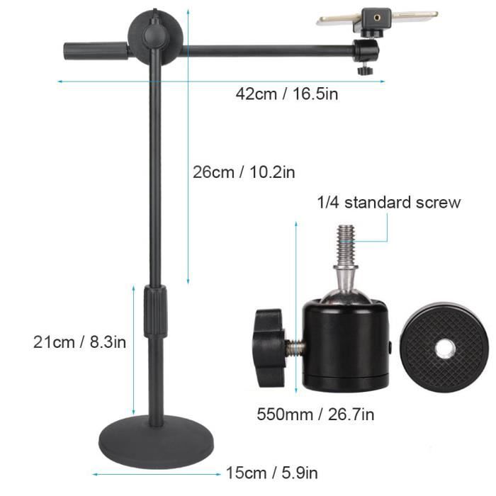 YIC Support de téléphone portable et tablette de bureau en alliage d... Base ronde métal de 15cm ultra stable et antidérapante. Hauteur réglable de 21 à 56cm avec barre transversale extensible de 21cm. Tête sphérique rotative 360... Support De Téléphone à Domicile, Support De Bureau Télescopique Pliable, Diffusion En Direct, Selfie (blanc Generic Support de levage pliable pour téléphone Portable et tablette