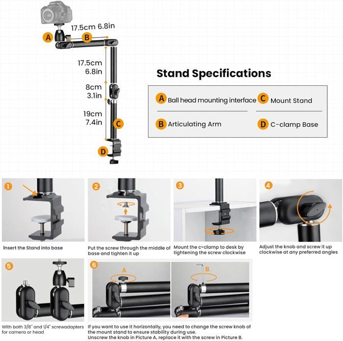 Contenu : 1 support de table., 1 clip., 1 vis 1/4. Support polyvalent pour smartphone · Construction robuste en aluminium · Pied compatible avec les plaques d'appareil photo Arca-Swiss · Filets ¼'' et 3/8'' pour un... Portable et réglable : le cadre de la caméra réseau peut être fixé à une table, bureau, buffet et lit. Longueur du support : environ 60 cm. Fixation Bureau Ou Lit Support De Téléphone Pour Webcam - Mâchoires Réglables - Avec Support Téléphone Webcam Flexible Maintenant, vous pouvez vous asseoir sur vos appareils ou l'utiliser aussi confortablement que possible sans le tenir dans la main. Point de liste : 1., Réglable : le cadre de la caméra réseau peut être fixé sur une table, bureau, buffet et et lit. La couleur réelle peut être légèrement différente de la couleur de l'image en raison des différents réglages d'écran et des effets de lumière. Avec le col de cygne réglable, vous pouvez prendre des photos, des vidéos en direct, des vidéos YouTube, des cours de yoga en temps réel, la cuisine, le sport, le vélo, etc. Tel que la table, le lit, la chaise, etc. Les vis 1/4 sont entièrement compatibles avec toutes les webcams Logitech, , caméras de sport et tous les autres appareils photo compacts avec filetage 1/4, comme B. Compatible avec : caméras réseau 1/4, téléphones portables et tablettes Couleur : noir. Réglable : le cadre de la caméra réseau peut être fixé sur la table, le bureau, le buffet, le lit L'épaisseur maximale est de 5,5 cm. Design flexible : la mini rotule de trépied offre une rotation à 360 degrés, qui peut être réglée pour obtenir différents angles de meilleure qualité. LITOU Support Tablette lit Support Telephone lit col de Cygne Support Tablette a