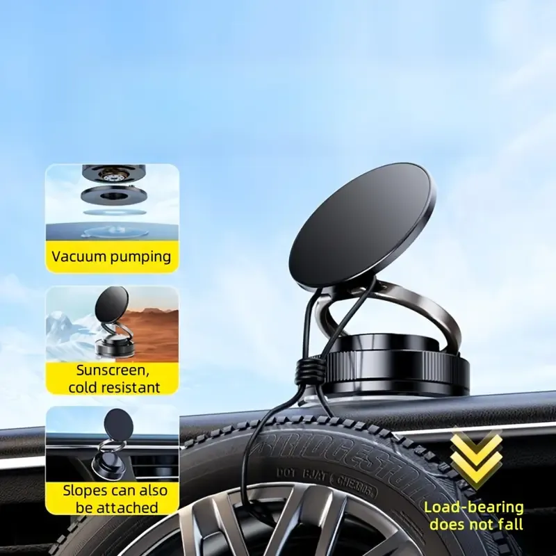 Sa portabilité vous permet de l'utiliser partout ! Support Telephone Voiture Magnetique Rotation 360 Degrés Support Téléphone Voiture Universel - Ventouse Extra-Forte - Rotation 360° - Noir Support Téléphone GPS Support Téléphone Magnétique Sous Vide Réglable à 360 Support de téléphone portable et incroyablement réglable : ce support magnétique offre une flexibilité absolue grâce à sa tige métallique innovante à deux axes : 210° en mode portrait et 360° en mode paysage. Ce support de téléphone magnétique à ventouse à 360° est conçu pour offrir une expérience d'utilisation optimale. Grâce à sa base hautement élastique, il se fixe fermement sur diverses surfaces lisses sans laisser de traces, même sur des surfaces sales Compatibilité totale : Compatible avec tous les smartphones. Anneau magnétique inclus pour les appareils non compatibles. Support Téléphone Voiture Ventouse Magnétique Pour Magsafe Porte Téléphone Voiture Aimanté Compatible Avec Iphone 16 Plus Pro Max 16e 15 14 13 12 Galaxy S25... Grâce à sa puissance d'aspiration rotative, ce support reste stable même sur les routes cahoteuses ou en cas de freinage brusque. Idéal pour ceux qui recherchent la flexibilité ! Fixation magnétique sécurisée pour tous vos appareils ! Support Magnétique Magsafe Support Téléphone Voiture Beeasy Aimant ultra-puissant : Pas de chute – Équipé d'un puissant aimant N55, ce support maintient votre téléphone en place, même sur terrain accidenté ou dans les virages serrés. Polyvalent : Utilisez le support partout, pas seulement en voiture !