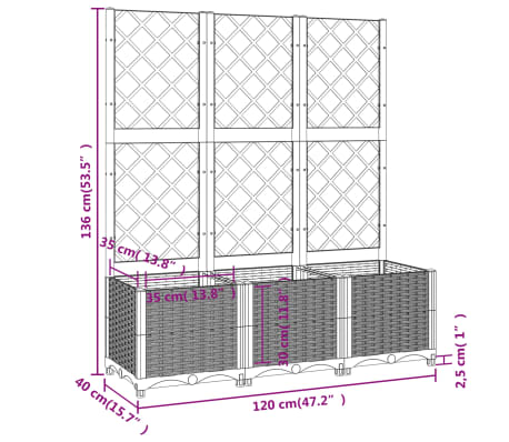 Bac Potager Surélevé Avec Support Jardinière Avec Treillis Gris Clair 120x40x121,5 Cm PP - Jardinier Jardinière Plastique Pour Plantes Grimpantes Matériau et dimensions durables : cette jardinière en polypropylène robuste mesure 120 x 40 x 136 cm et offre un espace optimal pour une variété de plantes et de fleurs en plein air avec sa plate-bande surélevée Jardinière, Bac à Fleurs, Pot De Fleurs Avec Treillis Gris Clair 200x160x142 Cm Pp 672889c2385aa2d4088cc64d Caractéristiques : Couleur : gris clair Matériau : PP (polypropylène) Dimensions (L x l x H) : 120 x 40 x 136 cm. Atyhao Jardinière avec treillis Gris clair 80x80x136 cm PP 11611... Ce pot de fleurs avec treillis est un excellent choix pour les plantes grimpantes dans votre jardin ou sur la terrasse. Treillis : le treillis intégré offre un excellent support pour les plantes grimpantes telles que les tomates, les pois et les roses. Bon à savoir : pour rendre le montage aussi simple que possible, chaque produit est livré avec des instructions (français non garanti). Il est léger, robuste et résistant aux chocs.