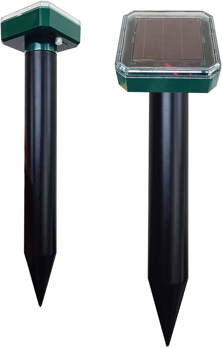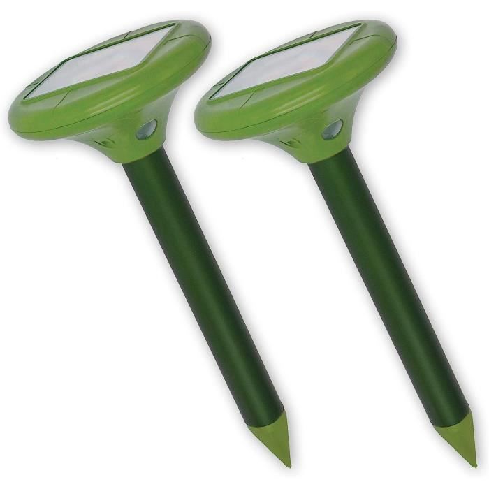 【Anti Taupe Solaire】: Notre anti taupe solaire utilise des vibrations pour gêner les taupes, les serpents, les visons, les souris et autres rongeurs et les éloigner des jardins et des pelouses. Le répulsif taupe est doté d'un filetage qui se visse facilement dans le sol, assurant une connexion parfaite et un contact optimal avec le sol, émettant ainsi des ondes sonores avec une efficacité maximale. Le anti taupe automatiquement un changement de fréquence continu toutes les 24 heures, ce qui évite tout effet d'accoutumance et empêche les rongeurs de développer une résistance aux ondes sonores. Manuel d'utilisation x1 Il est idéal pour les espaces extérieurs tels que les jardins, les terrasses, les garages, les allées, les fermes, etc. Éliminez les taupes efficacement grâce à l'anti-taupe StopMole 【Facile à utiliser】: grâce au filetage et donc à la vissage facile dans le sol. Appuyez sur l'interrupteur., Contenu: , Anti Taupe x 2 Description du produit Luttez contre les indésirables avec toute votre force Anti Taupe est une solution innovante pour repousser efficacement les rongeurs tels que les taupes, les campagnols, les visons, etc. Répulsif Taupe Repulsif De Taupe 4x Répulsifs Anti-taupes Solaires à Ultrasons - Éloigne Taupes, Serpents, Rongeurs - Vert - 7000 Pieds Carrés Repulsif Chat Interieur Appareil Anti Campagnol Solaire Rose - Répulsif de taupe avec moteur de vibration, Contrôle des taupes, Répulsif de campagnols... Il est recommandé d’installer un anti taupe solaire tous les 30 mètres. Une fois complètement chargé, il peut être utilisé en continu pendant 5 jours pour assurer un fonctionnement normal les jours de pluie. 【Sûr et respectueux de l'environnement】: le répulsif taupe solaire contre les taupes est fabriqué en matériau ABS de haute qualité, n'utilise pas de produits chimiques toxiques et est totalement sans danger pour les personnes et les animaux domestiques. l'appareil change de fréquence toutes les 24 heures, empêchant ainsi l'effet d'accoutumance chez les animaux. Protection Pelouse Sans Produits Chimiques Répulsif Solaire Taupes 4 Packs - Ultrasons Vibrations Pour Jardin Et Pelouse Vibrations Sol Jardin 【Conception de tige vissée】: les filetages permettent au répulsif anti taupe d'être facilement vissé dans le sol sans pré-perçage ni poinçonnage comme les appareils traditionnels, assurant ainsi sa stabilité. Veuillez placer l'appareil en plein soleil et à l'abri des arbres ou des bâtiments. Caractéristiques: Coque robuste Recharge solaire Une charge complète permet une autonomie de 5 jours.