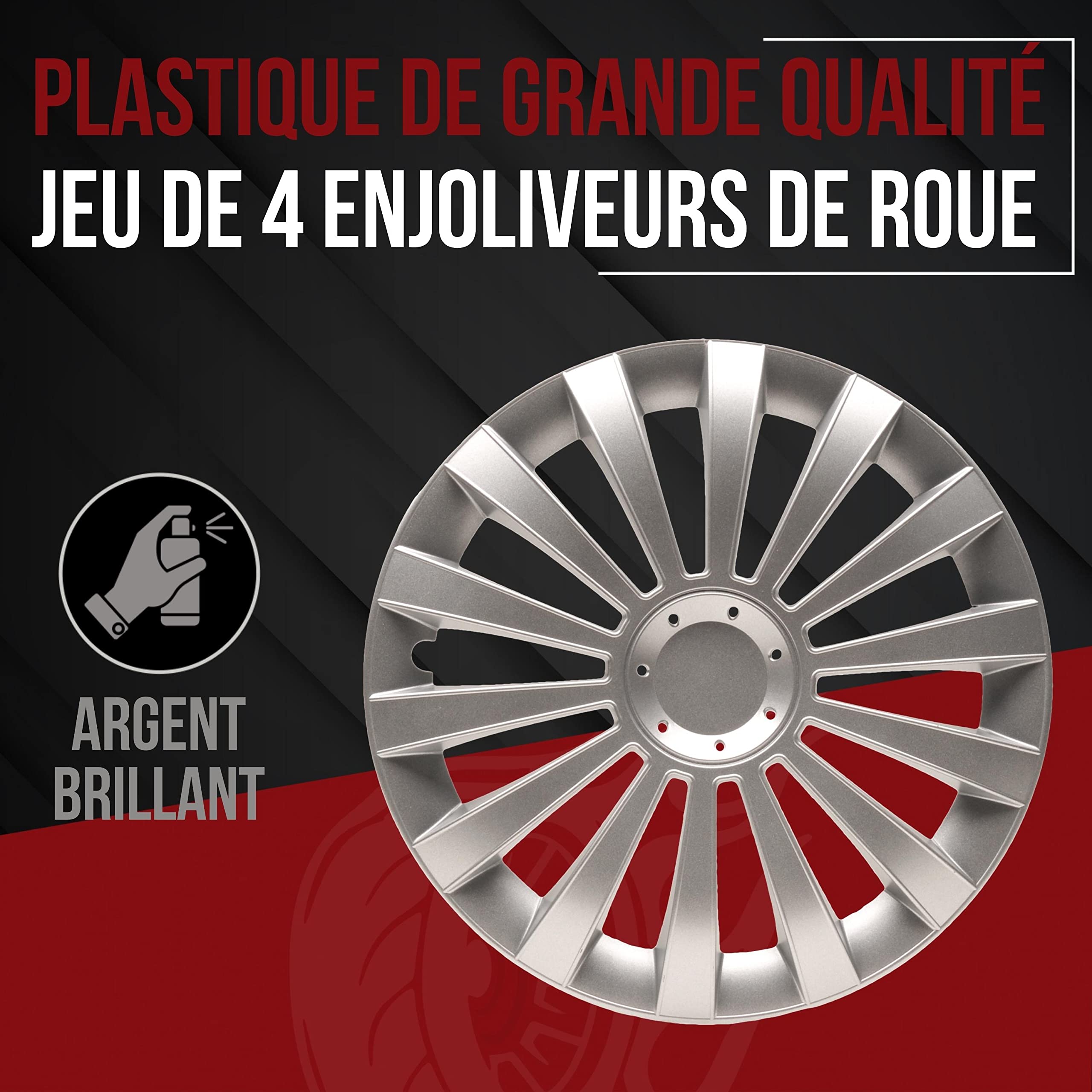 Enjoliveur 14 pouces noir et chrome AVALON - pack 4 enjoliveurs Enjoliveurs Universels 14 Pouces ENJOLIVEUR ENJOLIVEURS 16" 16 POUCES ARGENT ACTIVE RC Lot De 4 Piéce Coques Jantes Plastique Résistant Look élégant pour votre voiture · Matériaux de haute qualité · Montage facile · Ajustement universel · Facile à entretenir · Lot de quatre pièces · Caractéristiques... INSTALLATION FACILE : les enjoliveurs de roue s'adaptent parfaitement et s'installent rapidement grâce à leur système de fixation pratique. CARACTÉRISTIQUES : Lot de 4 enjoliveurs 14 pouces; Montage facile et rapide; Deux finitions; Universel; Argent- Noir... QUALITÉ EUROPÉENNE PREMIUM : nos enjoliveurs sont fabriqués en UE selon les normes les plus strictes et sont exclusivement livrés dans un emballage Albrecht authentique. APPLICABLE TOUTE L'ANNÉE : pour une protection maximale de vos jantes en acier tout au long de l'année, les enjoliveurs pour auto ont été conçus avec une protection supplémentaire contre la corrosion.