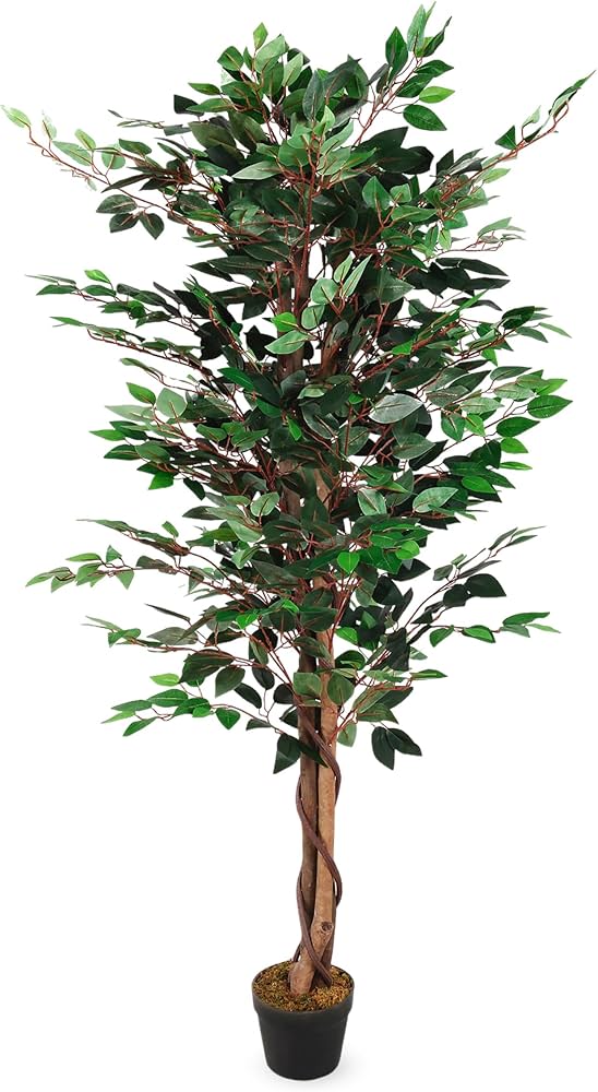 Pot Tressé Décoration PureDay Plante Artificielle "Ficus Benjamina" Avec Pot En Plastique Ficus Artificiel Ficus Artificiel En Pot - Plantes Artificielles Vertes Et Blanches Plante artificielle Ficus 3 Coupes 175 cm avec pot de 17,5 cm | Leroy... Le figuier artificiel est également livré avec un panier en corde de coton, à la fois esthétique et économique (évitant l'achat d'un pot supplémentaire). Idéal pour les foyers avec enfants ou animaux de compagnie. Aucun besoin d'arroser, tailler ou fertiliser ! Vous pouvez librement orienter les branches et feuilles pour s'adapter à votre décoration ou à l'agencement de la pièce, offrant une flexibilité parfaite pour répondre à divers besoins spatiaux et esthétiques. 【Décor Toujours Vert】 Parfait pour divers espaces, cette grande plante artificielle d'intérieur rehausse l'esthétique des salons, chambres, salles à manger et bureaux. Elle s'adapte aussi aux environnements commerciaux : entrées, terrasses, librairies, vitrines ou cafés. Une magnifique touche de verdure où que vous la placiez ! 3. Ces plantes d'intérieur ressemblent à de vraies plantes, mais ne nécessitent aucune coupe ou arrosage et resteront fraîches tout au long de l'année. 4. Ce...