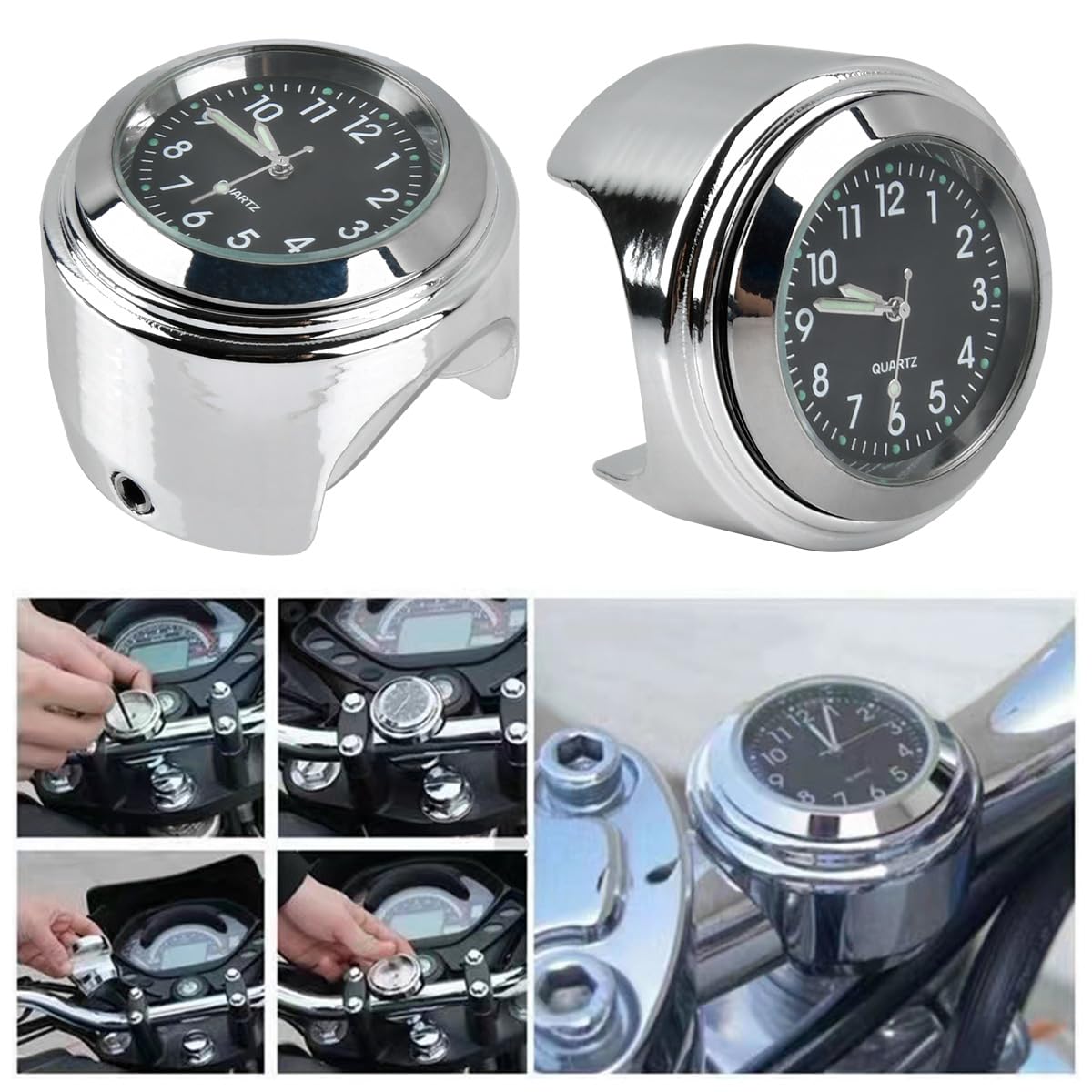 Caractéristiques : ️Matériau : alliage d'aluminium de haute qualité Taille : 4,5 × 4,5 × 3 cm Poids : environ 84,6 grammes. Les outils fournis (2 clés, vis, couvercle, coussinet antidérapant) permettent une fixation rapide et sûre, sans accessoires supplémentaires. Pas besoin d'électricité ou de piles - Parfait pour les conducteurs minimalistes qui apprécient la technologie fiable. Idéal pour la conduite de nuit ou les garages sombres - Pas besoin d'électricité ou de batterie, prêt à l'emploi à tout moment. Montre étanche IPX7 pour guidon de moto en alliage d Compatibilité universelle : cette montre de moto Editbar de qualité supérieure est spécialement conçue pour les guidons ronds et s'adapte parfaitement aux motos, vélos électriques, VTT et vélos. 2ème Fabriquée en alliage d'aluminium robuste, la montre offre une excellente durabilité et résistance. ontre étanche pour Guidon de oto - Horloges pour oto, Horloge... Une mise à niveau fonctionnelle et esthétique pour votre véhicule Fonctionnalités: 1., L'horloge est certifiée IPX7 étanche et est parfaite pour une utilisation sous la pluie ou les éclaboussures. Affichage analogique : l'affichage analogique clair de l'heure est facile à lire même dans l'obscurité grâce aux aiguilles fluorescentes. Accessoire Deux-roues Montre Analogique Anti-pluie Montre Moto Guidon, 7/8" Horloge Numérique De Montage De Guidon De Montre Guidon Moto étanche IPX7 Auto - Découvrez notre offre Horloge de guidon de moto, placage chromé, heure précise, montre de montage de guidon en alliage d'aluminium étanche Compact et élégant : avec seulement 4,5 × 4,5 × 3 cm et un poids de 84,6 g, cette horloge de guidon offre un ajout discret mais élégant à tout deux-roues.