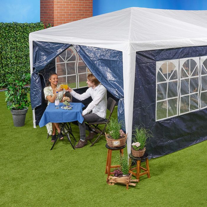 1 paroi avec fermeture éclair pour une entrée pratique Lot de 6 parois latérales pour tonnelle Grâce à ce lot de 6 parois latérales, vous protégez une partie de votre jardin des intempéries. Grâce aux fermetures scratch, les parois pour tonnelle peuvent être fixées et retirées rapidement et facilement. Lot de 6 parois latérales pour tonnelle en détail Dimensions Remarque : Veuillez noter que les dimensions peuvent varier d'environ 5 %. Les parois robustes sont conçues en pE (polyéthylène) indéchirable et étanche. Faites de votre pavillon un petit îlot protégé dans votre jardin grâce à ce lot de 2 parois latérales. Ces parois protègent des rayons forts du soleil, de la pluie, du vent et du froid Robuste : Parois robustes en plastique pE (polyéthylène) - Anti déchirures, étanche, résistant 4 parois avec fenêtres laissant passer la lumière Fiabilité constante et engagement concret Parois Tonnelle Parois Latérales De Belvédère Avec Fenêtres Lot De 2 Pièces Blanc Parois Avec Fenêtres Et Porte Relaxdays. Parois latérales pour tonnelle, Lot de 6, 2x3 m, étanche, fenêtres & Porte, PE (polyéthylène), Scratch, Blanc. 54,99 €. Acheter sur Amazon Home... Ingénieux : Parois avec fermeture à scratch - Fixation simple et rapide à la structure Polyéthylène indéchirable, étanche & résistant aux intempéries Contenu de livraison 4x Parois latérales pour tonnelle avec fenêtre, 1x Paroi avec porte, 1x Paroi fermée Montage facile grâce aux fermetures scratch Extérieur : Tente de réception comme abri pour se protéger des intempéries Protection Tonnelle Fenêtre Porte Parois Tonnelle RELAXDAYS Lot De 6 - 2x3m étanche Fenêtres Et Porte Bleu Tonnelle De Jardin Exterieur Livraison sans objets de décoration et sans pavillon Poids par paroi : env., 0,5 kg Matériau : polyéthylène (90 g/m²) , Couleur : blanc Dimensions de chaque partie latérale H x L : env., 2 x 3 m
