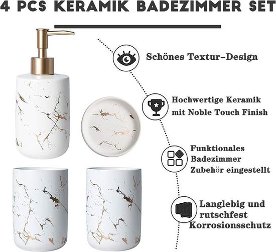 Kit Salle De Bain Pratique BosilunLife Ensemble D'accessoires De Salle De Bain Noir – Distributeur De Savon En Céramique 3 Pièces Pour Salle De Bain De Ferme, Comptoir De Salle De Bain, Distributeur De Savon Et Porte-brosse à Distributeur De Savon Céramique organisateur salle de bain by ninie44 | Download free STL model... Ensemble de salle de bain en céramique à motif de diamants, 4 pièces La tête de pompe dorée ajoute des décorations à l'ensemble du design Organisateur Salle De Bain Bellwood - Distributeur, porte savon et... Satisfaction à 100 % - Si l'un des produits BosilunLife ne répond pas à vos besoins, contactez-nous simplement et nous vous aiderons à le résoudre en 24 heures. Fabriqué en céramique de haute qualité faite à la main, sans plomb, réutilisable et respectueux de l'environnement., Facile à nettoyer. Même après une longue utilisation, il peut toujours conserver une texture Ensemble de salle de bain 4 pièces : l'ensemble de salle de bain vous offre des accessoires de salle de bain élégants et pratiques, dont 1 distributeur de savon, 1 porte-savon et 2 gobelets à brosse à dents., Excellente céramique.