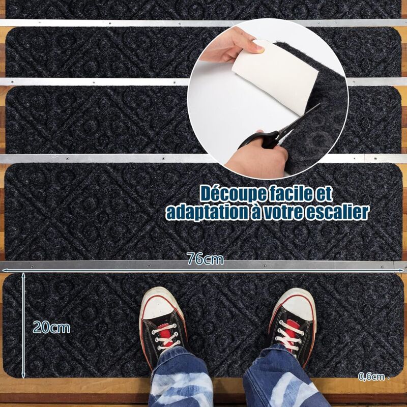 Tapis Découpable Sur Mesure COSY HOMEER Moquette Escalier Antidérapante 70x22cm, Lot De 4 Tapis Marchette Lavable Et Découpable, TPE Auto-Adhésif, Sécurité Enfants, Noir Protection Enfants Escalier Sac pour marchette à rabat marine fleuri | Distribution Dominique Lemay Lot de 15 Tapis d'escalier autocollants Marchette Escalier Bleu 56x17x3 cm Aiguilleté ENTRETIEN FACILE ET PRATIQUE: Lavables en machine jusqu'à 30 fois sans perte de qualité. Tapis de bain antidérapant double face en TPE beige - Découpable à volonté, sans odeur(43x61cm... Faciles à repositionner ou retirer, gardant vos escaliers propres et comme neufs. Nettoyez, collez et ajustez sans résidus. IDÉAL POUR LES FAMILLES AVEC ANIMAUX: Tapis escalier antidérapant, parfait pour les foyers avec enfants et animaux, offrant confort et sécurité, même sur des sols mouillés. SÉCURITÉ ACCRUE AVEC STRIPS ANTIDÉRAPANTS: Les tapis de marche escalier avec dos antidérapant en TPE et bandes antidérapantes offrent une prise supérieure, évitant les glissades et protégeant vos sols.