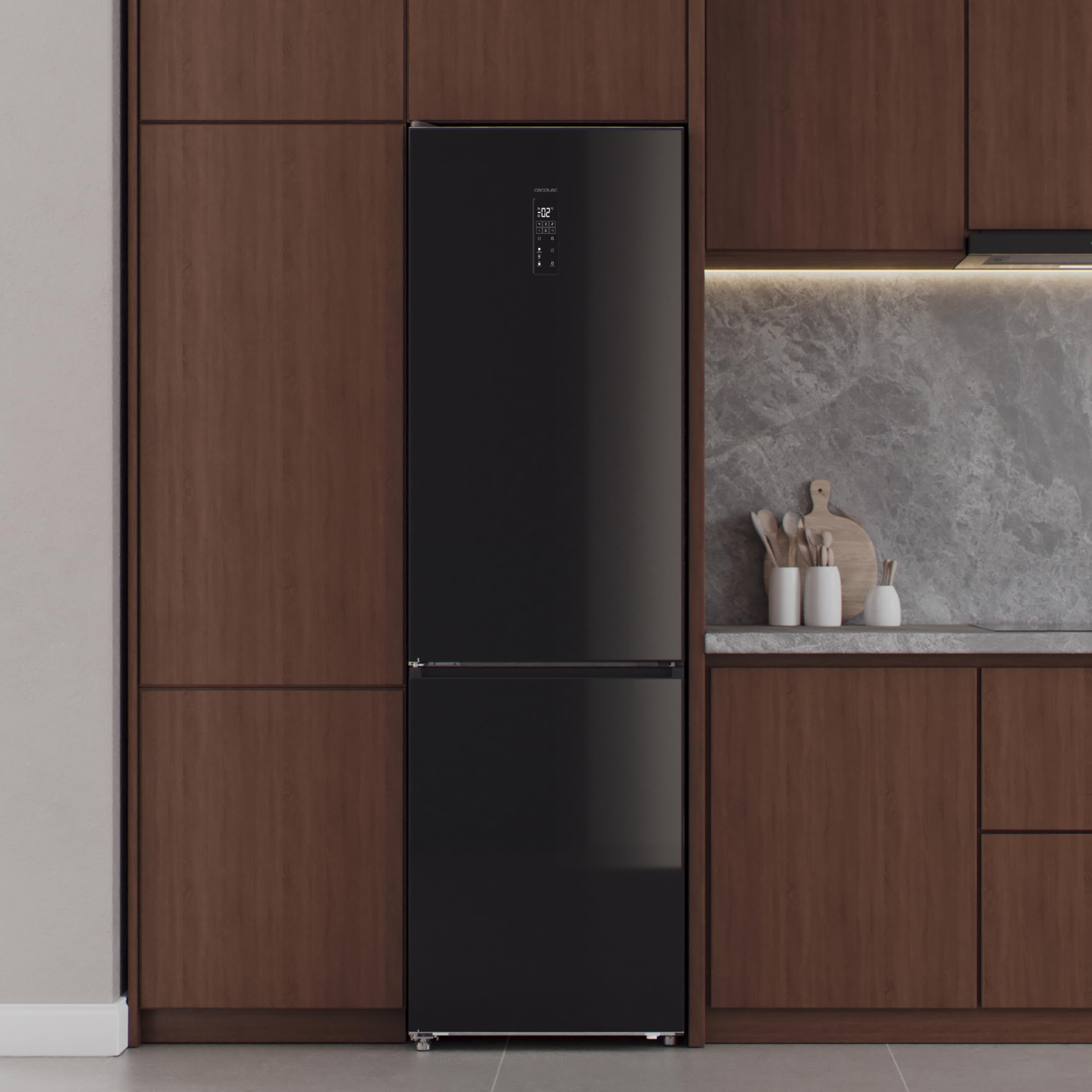 Réfrigérateur Semi-intégrable Inverter Silencieux Réfrigérateur Combiné Cecotec 456L Total No Frost Bolero CoolMarket Combi 456 Sombre C. Hauteur Zone Convertible Réfrigérateur Congélateur Design de portes extra plat qui permet de retirer les tiroirs et d'y accéder confortablement avec les portes ouvertes à seulement 90°, pour une ergonomie totale même en installant le réfrigérateur à côté du mur. Design de portes extra plat qui permet de retirer les... Cecotec Réfrigérateur Américain 4 Portes Sombre de 490 L CoolMarket 4D Accédez à toutes les fonctions et réglages de température depuis le confortable affichage numérique extérieur. Bolero CoolMarket 4D 436 Inox E Référence : 01948 Bolero CoolMarket 4D 436 Inox E Réfrigérateur-congélateur à 4 portes en acier inoxydable, 183 cm de hauteur et 83,6 cm de largeur, capacité de 436 litres, Total No Frost, classe énergétique E, mode Fast Cooling et Fast Freezing, système MultiAirFlow, mode Vacances et Metal Cooling Design de portes extra plat qui permet de retirer les tiroirs et d'y accéder confortablement avec les portes ouvertes à seulement 90°, pour une ergonomie totale même en installant le réfrigérateur à côté du mur. Fonctions FastCool pour un refroidissement plus rapide, FastFreeze pour une congélation ultra rapide à -32 °C pendant 4 heures, et mode vacances qui ajuste automatiquement les performances en période de faible activité à la maison. La stérilisation ionique élimine les bactéries et les mauvaises odeurs en ionisant l'air. Ventilation inférieure et frontale : avec ces conceptions, il ne faut que 4 mm d'espace latéral pour un fonctionnement parfait et vous pouvez ouvrir les portes sans obstacles.