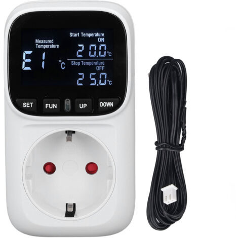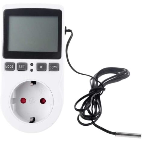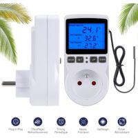 Protège vos équipements et assure un environnement stable pour reptiles, plantes ou poissons sensibles. Contrôleur de Température Précis – Réglez facilement les températures de démarrage et d’arrêt pour vos appareils de chauffage ou de refroidissement. Prise Thermostat Thermostat Numérique Prise Contrôleur Température 220V 2 Relais Sonde Pour Terrarium Reptile Incubateur 91813158 Thermostat Connecté XIT Sortie contrôlée par thermostat Prise de contrôle de température Affichage LCD Boîtier ABS... Idéal pour serre, aquarium, terrarium ou incubateur. Thermostat numérique sur prise 230V avec sonde externe – contrôle précis de la température et de la minuterie pour chauffage et refroidissement. 📦 Contenu du pack : 1 × Thermostat prise 230V 1 × Sonde de température externe 1 × Manuel d’utilisation 👉 Automatisez vos appareils électriques et contrôlez la température avec précision – simple, fiable et sécurisé ! Installation rapide, pas besoin de configuration complexe. Minuterie Intelligente Intégrée – Fonction minuterie avec mode cycle et compte à rebours réglable de 0 à 99h59min. Ce contrôleur de température est conçu pour automatiser facilement vos appareils électriques. Large Compatibilité & Usage Polyvalent – Convient pour de nombreux appareils électriques (chauffage, refroidisseur, ventilateur, pompe)., Capacité jusqu’à 16A. Idéal pour automatiser la température dans les serres, aquariums, terrariums de reptiles ou pour la maison connectée. Thermostat numerique avec sonde : la sélection produits Leroy Merlin de ce samedi au meilleur prix ! Retrouvez ci-après nos 83 offres, marques, références et promotions en stock prêtes à être livrées rapidement dans nos magasins les plus proches de chez vous Permet de programmer vos appareils selon vos besoins. Installation simple Plug & Play, idéale pour maison connectée, serre, aquarium ou élevage. Grâce à sa large plage de fonctionnement (-40℃ à 120℃) et sa précision de ±1%, il assure un contrôle fiable dans les environnements sensibles tels que les serres, aquariums, terrariums ou incubateurs. Prise Thermostat, Thermostat Terrarium avec Ecran LCD et Sonde, Regulateur de Température