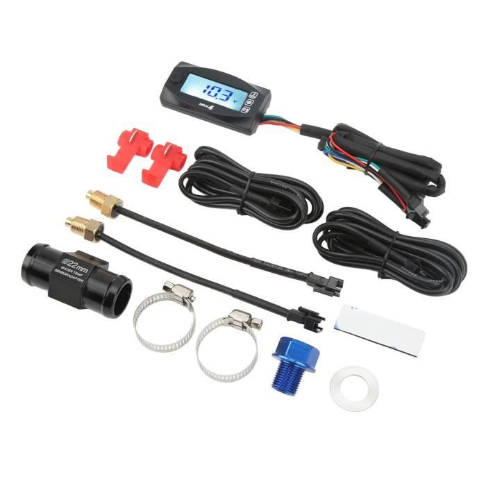 Lumière rouge 4 en 1, jauge de pression d'huile + de température de l'eau + jauge de niveau de carburant + voltmètre avec capteur 0-190 ohm, voiture automobile 12V personnalisée Spécifications : * Plage de température : -50 degrés Celsius à 110 degrés Celsius * Tension : 5 V-24 V disponible * Sonde: étanche * Taux de rafraîchissement : 2 secondes * Longueur du fil de la sonde : 0,6 mètre * Longueur du fil d'alimentation : 40 cm () * Dimension de l'unité : 4,8 cm * 2,8 cm * 1,7 cm () * Affichage : degré... Voltmètre Horloge Moto Jauge De Température D'huile, écran LCD étanche 4 En 1 Affichage Numérique étanche Lorsque la température de votre moto dépasse 120 ℃, le thermomètre clignote pour vous avertir., 5., Modèle applicable : la tension de fonctionnement de ce compteur est DC12V, peut être utilisée pour la plupart des motos, avec rétroéclairage bleu pour une utilisation nocturne. Caractéristique: L'affichage numérique LCD est adopté, avec une forte luminosité, une forte étanchéité, une précision de mesure élevée et une durée de vie plus longue. Conception de compteur 4 en 1 : la jauge a des multifonctions, y compris une jauge de température de l'eau, un compteur de température d'huile, un voltmètre et une fonction de temps. [Conception de compteur 4 en 1]La jauge a des fonctions mu... 60 x 30 x 13 mm / 2,36 x 1,18 x 0,51in Avertissement de température : Clignotant lorsque la température est supérieure à 120 ℃, 248 ℉ Tension de fonctionnement effective : DC12V Rétroéclairage : Bleu Modèle applicable : Universel pour les motos Mode d'emploi : Méthode de câblage : 1., Temp A‑Fil jaune et fil blanc., 2., Temp B-Fil vert et fil blanc., 3., Le fil bleu se connecte à la clé sur l'interrupteur d'alimentation principal DC 12 V ., (+)4., Le fil noir se connecte à la carrosserie du véhicule., (‑)5., Le fil rouge se connecte à la batterie DC12V., (+)6., Température de l'eau : le té doit être connecté au tuyau du réservoir d'eau de Unité ℃ ou ℉ : L'unité d'affichage de la température de travail peut être ℃ ou ℉, et vous pouvez ajuster l'unité selon vos besoins pour obtenir une meilleure adaptabilité. Lorsque la température de votre moto dépasse 120 ℃, le thermomètre clignote pour vous avertir. Plage de 0 à 120 ℃ : la plage d'affichage de la température est de 0 à 120 ℃.