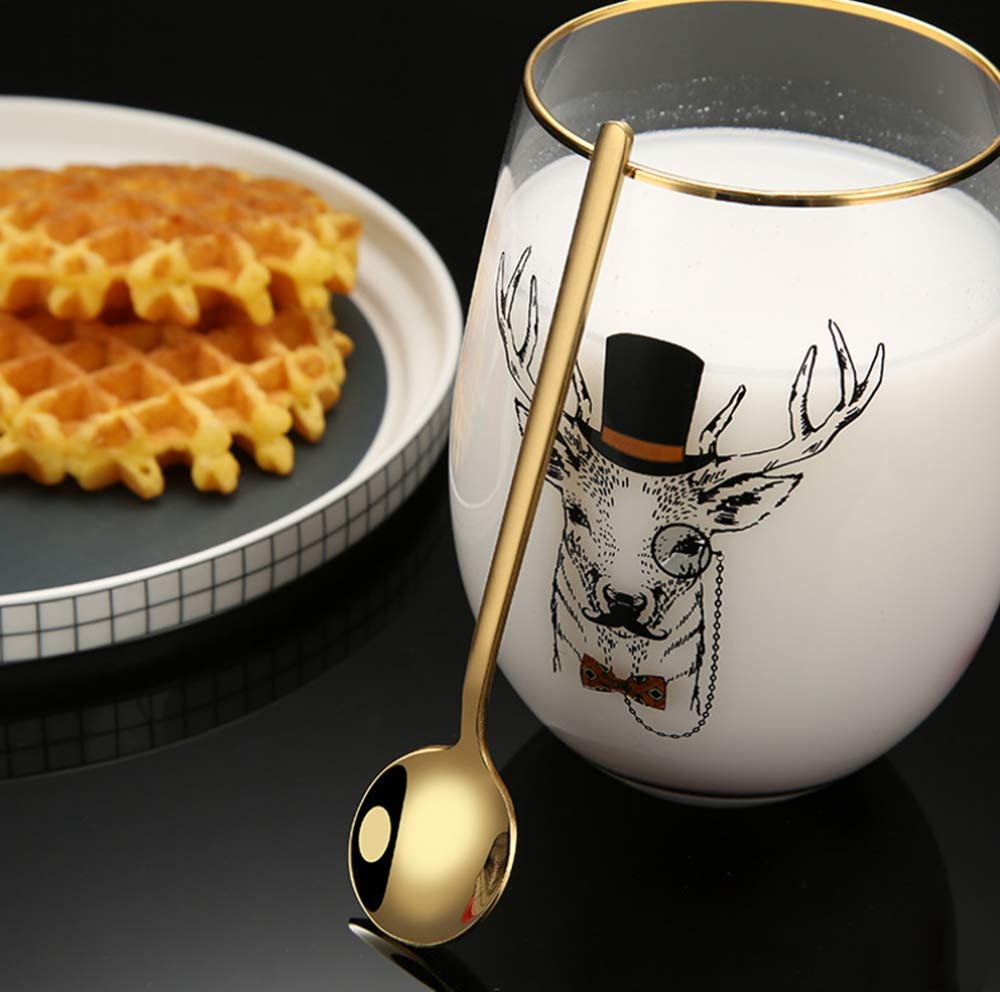 Set cadeau idéal - Le set de 6 cuillères Ateweita est une idée de cadeau parfaite pour Noël, un emménagement, un anniversaire ou comme cuillère à tasse pour enfants., Remarques : 1., ne pas nettoyer avec de la laine d'acier ou des produits abrasifs 2., éviter les acides/bases forts 3., protéger le revêtement contre les rayures Petite Cuillère , Cuillère à Café En Acier Inoxydable,poli Miroir Set De 6 Cuillères à Café Ateweita petite cuillère Vidéo de marchand Conseils chaleureux: Caractéristique: Respectueux de l’environnement, réutilisable, portable et facile à nettoyer. Après chaque utilisation, lavez la vaisselle avec de l’eau tiède et un détergent doux. Évitez les détergents contenant du chlore ou des agents anti-calcaires Acier inoxydable de première qualité & revêtement en titane - Fabriquée en acier inoxydable (12 cm x 2,5 cm), chaque cuillère à moka combine une hygiène durable et un aspect luxueux. La surface polie à plusieurs reprises et le revêtement en titane garantissent la solidité des couleurs - même en cas d'utilisation quotidienne. Ces cuillères à fé forgées d'après la plus pure tradition des ouvriers fabrints de couverts forment une unité avec les tasses à fé. Elles tiennent élé... Le design naturel confère à chaque table un raffinement élégant et convient parfaitement comme cadeau pour les gourmets. Plongez une feuille dorée dans votre bonheur café,Ateweita Cuillères à Café Pratique pour le quotidien, les fêtes ou le bistrot - l'hygiène sans effort. Petite cuillère à café en acier doré avec petit mot à personnaliser – Un chat dans ma botte Set de 6 cuillères à café au design raffiné en forme de feuille - les cuillères à café Ateweita séduisent en tant que set de 6 cuillères à café au style filigrane en forme de feuille - idéales comme cuillère à thé, cuillère à dessert ou pour l'expresso. Leur taille compacte en fait une aide indispensable dans la cuisine, au bar ou en déplacement.