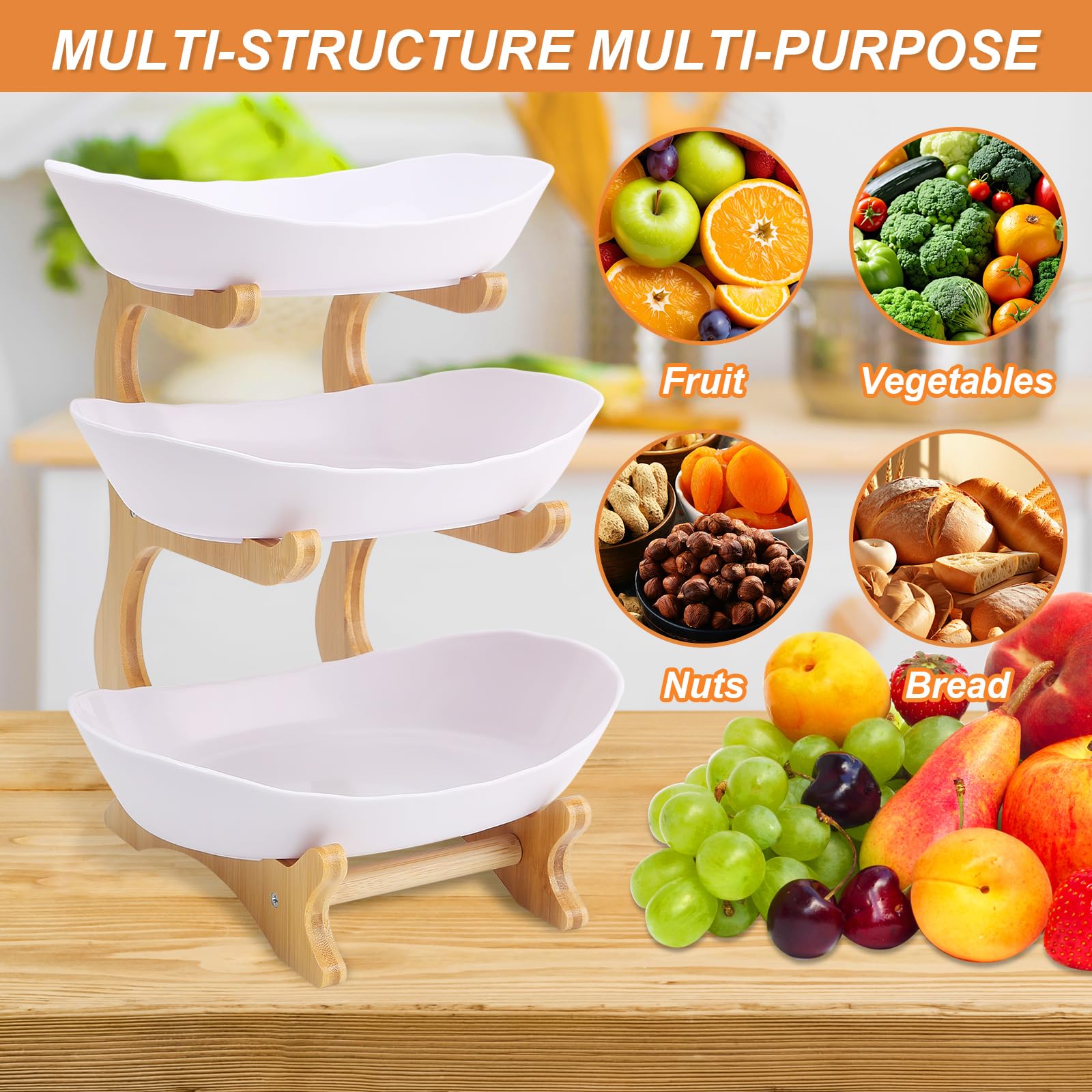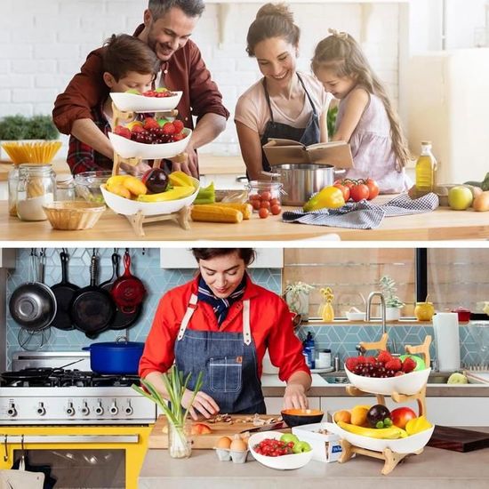 Plan de travail de cuisine : ce support à fruits est fabriqué en plastique PP de qualité alimentaire et en bambou naturel. Corbeille Fruits Empilable Plastique Blanc Étagère à Fruits à 3 Niveaux, Corbeille à Fruits Etagere Avec Support Rangement Fruits Légumes Collations Les plateaux lisses et amovibles peuvent être essuyés avec un chiffon humide et le design empilable facilite le rangement lorsqu'ils ne sont pas utilisés Rangement polyvalent : trois niveaux de tailles différentes (20 cm, 23 cm, 28 cm) offrent de la place pour les fruits, les légumes, les collations ou même les petits articles ménagers tels que les clés et les bijoux. Facile à installer et à nettoyer : comprend une étagère de rangement, des vis et des instructions claires pour un montage rapide (1 à 2 minutes). Présentoir à fruits : la base en bambou renforcée (12 mm d'épaisseur) et les plateaux en plastique emboîtables empêchent le vacillement, même à pleine charge. Corbeille à fruits et légumes en bois à 3 niveaux, organiseur Design peu encombrant : la corbeille à fruits à 3 niveaux maximise le stockage vertical et est donc idéale pour les petites cuisines ou les plans de travail bondés. Il garantit un stockage sûr des fruits et des collations. Le design ouvert favorise la circulation de l'air et garde les produits frais plus longtemps Son design multicouche assure une fonctionnalité sans encombrement Le design surélevé maintient les aliments loin de la surface de travail et réduit ainsi l'accumulation d'humidité, tandis que la structure équilibrée garantit que l'appareil ne se renverse pas lors d'une utilisation quotidienne Corbeille À Fruits À 2 Étages, Porte-Bol À Fruits En Acier Au Carbone... Marks & Rivers Support à fruits élégant à 3 étages, corbeille à fruits... Couleur : bambou naturel avec plateaux blancs. Le design empilable permet un démontage facile lorsqu'il n'est pas utilisé, économisant ainsi de l'espace précieux. Le cadre en bambou est poli pour éviter la corrosion, tandis que les coques en plastique résistent à la déformation et offrent une fiabilité à long terme Dites adieu aux plans de travail encombrés et profitez d'une fraîcheur organisée.