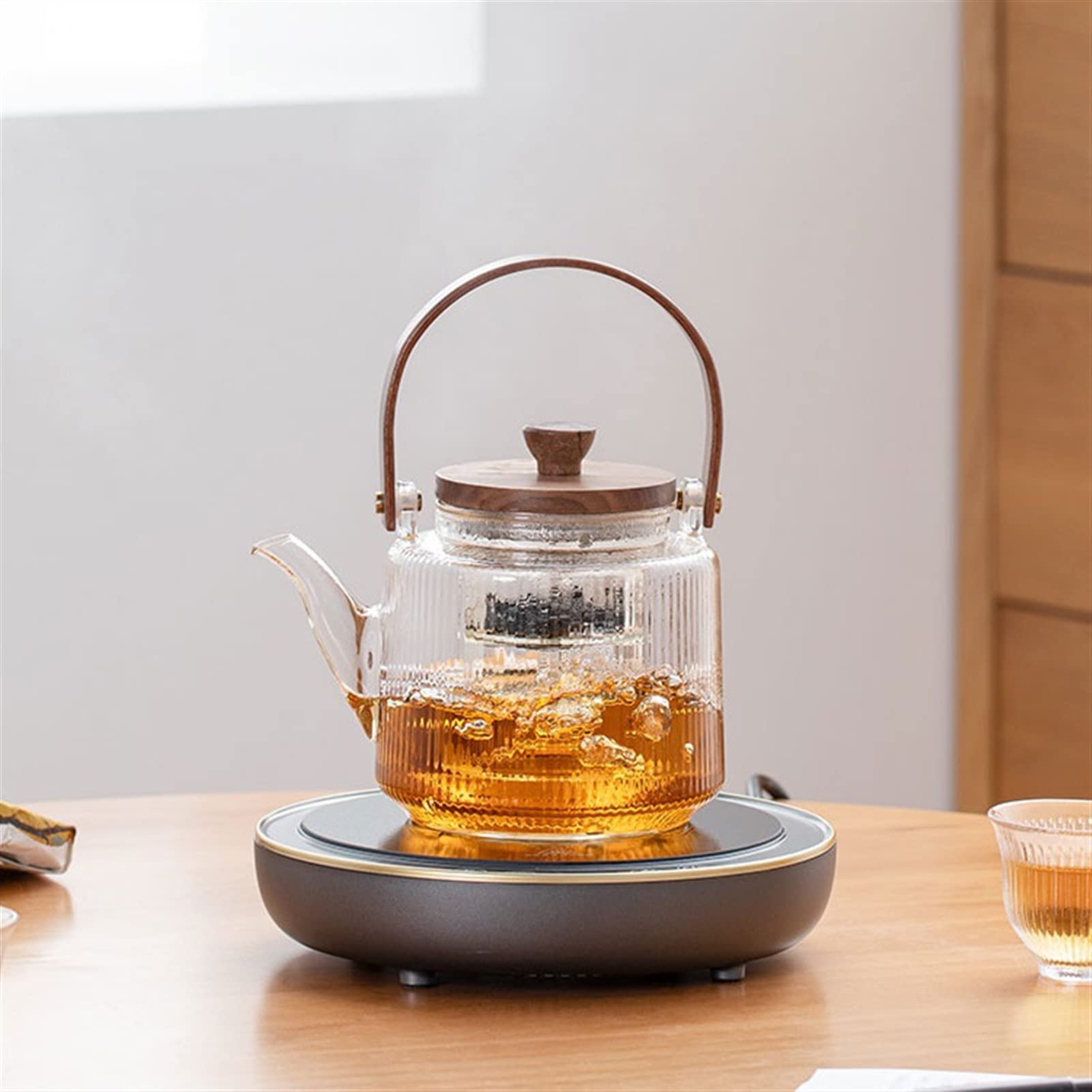 Théière Design élégant Facile Nettoyer Théière Sûre Pour Cuisinière, Verre Borosilicaté Transparent, Infuseur Théière Verre Bouilloire Théière en Verre 750ml-1,5L | Mon Armoire à Thé Transparent Théière en verre borosilicate, bouilloire, grande théière... Conçue en verre borosilicate de haute qualité, capable de supporter des températures de -20 °C à 150 °C, elle allie élégance et robustesse. Son bec verseur en forme d’aigle garantit un écoulement fluide et précis, tandis que sa poignée ergonomique assure un confort optimal à chaque service. Profitez d’une infusion parfaite grâce à son filtre avancé et amovible, conçu pour le thé en vrac comme pour les délicates infusions florales. Offrez-vous une expérience de dégustation raffinée avec cette théière en verre de 800 ml, équipée d’un filtre en acier inoxydable résistant à la chaleur. Pour encore plus de flexibilité, le couvercle s’utilise aussi sans l’infuseur. Il est également possible de réchauffer votre thé délicatement sur une cuisinière à gaz ou électrique, au moyen d’un four à micro-ondes, ou de le maintenir à température à l’aide d’un chauffe-théière à flamme nue. Pour une infusion à froid, vous pouvez le placer au réfrigérateur ou l’exposer à la lumière directe du soleil. Convient aussi bien au froid qu'au chaud : il reste intact même si vous remplissez immédiatement la théière congelée avec de l'eau bouillante. Facile à utiliser : cette théière avec infuseur est un ensemble complet qui est facilement amovible pour préparer du thé en vrac et de l'eau bouillante