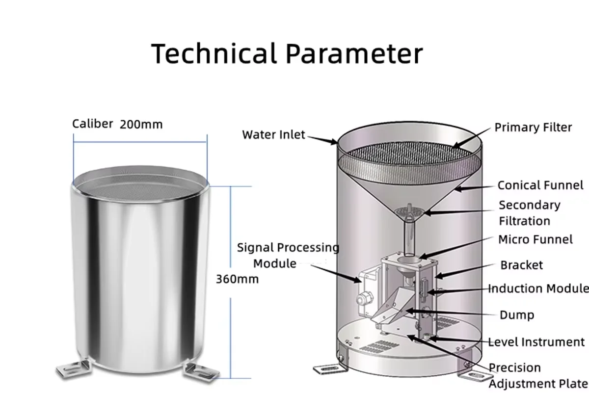 Capteurs de précipitations/pluie CAPTEUR SANS FIL extensible pour station météorologique FanJu piste... Capteur Pluie Optique Module De Capteur De Pluie Entièrement En Acier Inoxydable, Type Seau Basculant, Mesure Des Précipitations, émetteur RS485 0,2 Mm (0,2 Mm 0-2 V Station Météo Colonne de douche Effet Pluie - 140x20cm - Acier inoxydable Chrome... Avec Rs485 et des options de sortie d'impulsion, ce capteur est idéal pour les stations météorologiques, les systèmes agricoles, les projets de ville intelligente et la gestion du trafic. Gauge de pluie optique en acier inoxydable pour la station météorologique, capteur de précipitations d'impulsion à double canal - IP65, surveillance des précipitations Description: La série XM9505 est une jauge de pluie optique en acier inoxydable de pointe conçu pour la surveillance météorologique professionnelle.