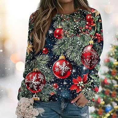 Sweat-shirt léger à col rond pour femme, imprimé sapin de Noël, décontracté, à manches longues, pour la saison des vacances d'automne et d'hiver, confortable, doux, basique, style t-shirt Pull de Noël Néon - Père Noël en Lumières Vives vendu par International marie parfaitement avec des bottes, un jean ou un legging pour créer une tenue tendance en hiver comme printemps. Ne pas utiliser d'eau de javel, éviter l'exposition directe soleil et sécher à l'air libre. Vêtement Moche Chic Pull De Noël Moche Avec Lumières Et Porte-bière, Pull De Noël Pull De Fete Femme Occasions d'utilisation : Convient pour un usage quotidien, les vacances, Noël, les , le sport, l'école, le travail et le style urbain. Matériau : Léger et doux, il offre une chaleur durable tout en apportant une sensation de fraîcheur tout long de la journée. Entretien : Lavable à la main ou en machine à l'eau froide. Pull de Noël Femme Manches Longues - Style Ugly Chic Lumineux avec Lumières, Tenue Rigolo Originale pour Fêtes, Vêtement Moche Festif pour Femmes