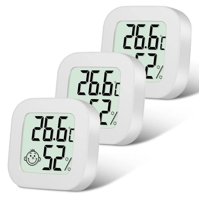 Sans Pile écologique Thermomètre Hygrometre Intérieur, 3Pcs Mini Thermomètre Hygromètre Mini Thermomètre Solaire AVERTISSEMENT] Fonctionne UNIQUEMENT sous éclairement lumineux (pas de stockage d'énergie). Capital : Inopérant dans l'obscurité et NÉCESSITE JAMAIS de recharge – conversion photovoltaïque directe ! [Éveillé par la Lumière, Alimenté par la Nature] S'active avec une lumière ultra-faible (45 lux) – moins qu'un éclairage intérieur (100 lux) et bien inférieur à une... Jauge numérique de mesure de la température et de l'humidité pour maison, chambre de bébé, bureau, thermomètres à énergie solaire, hygromètre Installez et oubliez – alimentation durable par lumière. 4 Mini Thermomètre Hygromètre Intérieur Digital Thermometer Hygrometer... Simplicité écologique sans entretien. Capital : Inopérant dans l'obscurité et NÉCESSITE JAMAIS de recharge – conversion photovoltaïque directe ! Zéro Problème de Piles : Zéro coût., Zéro déchet. AVERTISSEMENT: Fonctionne UNIQUEMENT sous éclairement lumineux (pas de stockage d'énergie).