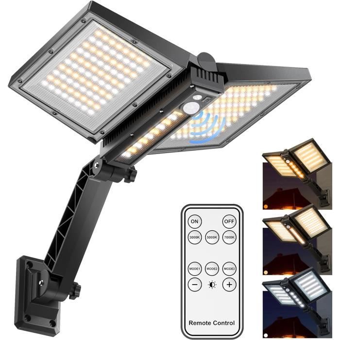 éclairage Solaire Jardin Garage Lampe Solaire Extérieur Détecteur De Mouvement, 120° Réglable, 32led Eclairage Exterieur Avec Detecteur 3 modes d'éclairage : les spots solaires d'extérieur Burley peuvent être réglés sur trois modes d'éclairage. · [Étanche IP65] Le détecteur de mouvement solaire... Swiixxer Applique Murale Extérieure Solaire 280 LED avec Détecteur de Mouvement Projecteur Solaire avec 3 Modes D'Éclairage Réglables pour Jardin Commutateur de lumière intelligent: ce Lumiere Solaire Exterieur construit dans le commutateur de lumière, la première utilisation nécessite l'ouverture manuelle du commutateur de lumière, la lumière passera par l'induction intelligente de la luminosité ambiante, automatiquement en mode de charge pendant la journée, Allumez la lumière la nuit, pas besoin d'utiliser manuellement ou à l'aide d'une télécommande Projecteur Extérieur Détecteur de Mouvement, 35W 2800LM Triple Spot LED... Réglable de 120° vers le haut et vers le bas: Cette Applique Murale à Détecteur de Mouvement prend en charge le réglage de 120° vers le haut et vers le bas, ce qui facilite le réglage flexible de l'éclairage de près ou de loin en fonction des besoins de la plage d'éclairage, et le pliage maximal permet au panneau de coïncider avec le mur, pratique et esthétique Détection de mouvement de 10 m 120°: Cette Lampe Solaire Exterieur Detecteur de Mouvement utilise un capteur de mouvement PIR haute sensibilité pour une détection rapide dans un grand angle de 10 m 120°, avec une hauteur d'installation recommandée de 2,5 m. Détection rapide et allumage automatique de la lumière, que ce soit pour les piétons ou les animaux de compagnie qui passent devant la lampe murale Description du produit: Caractéristiques: Détection rapide dans la gamme grand angle de 10 mètres 120 °, hauteur d'installation recommandée dans les 2,5 mètres Trois modes d'éclairage: 1., Lorsque la personne est proche, Allumez la lumière pendant 30 secondes, éteignez la lumière lorsque vous quittez; 2., La lampe reste toujours allumée avec une luminosité de 30%, la luminosité devient 100% lorsque la personne s'approche et revient automatiquement à 30% de luminosité lorsqu'elle part; 3., La lampe reste normalement allumée avec une luminosité de 30% (pas d'induction à ce stade) Interrupteur photosensible intégré, la première utilisation nécessite l'ouverture manuelle de l'interrupteur photosensible, la lampe passera par une induction intelligente de la luminosité ambiante, entrera automatiquement en mode de charge pendant la journée, Allumez la lampe la nuit, pas besoin d'être actionné manuellement ou à l'aide d'une télécommande Soutenir le réglage de 120 ° vers le haut et vers le bas, le pliage maximal peut réaliser le panneau coïncidant avec le mur, pratique et beau Conception de boîtier étanche extérieur professionnel de classe ipx45, taux de conversion 93% panneau solaire en silicium cristallin élevé, dans des conditions de lumière abondante, 5 - 8 heures peuvent être complètement chargées, pour atteindre environ 36 heures d'éclairage, les jours nuageux et pluvieux peuvent également être éclairés 2 - 3 nuits Spécifications: Nom du produit: lampe solaire extérieur protecteur de mouvement Couleur: noir Taille: 11 * 12 * 2., 5cm Matériel: ABS Nombre de perles de lampe: 32led Luminosité d'éclairage: 350 - 470 Lumens Température de couleur: 5500k Classe imperméable à l'eau: ipx45 Puissance nominale: 5 (w) Tension: 12 (v) Plage d'induction: 10 mètres 120° Hauteur d'installation: à moins de 2,5 mètres du sol Le paquet contient: 1 x lampe solaire extérieur protecteur de mouvement