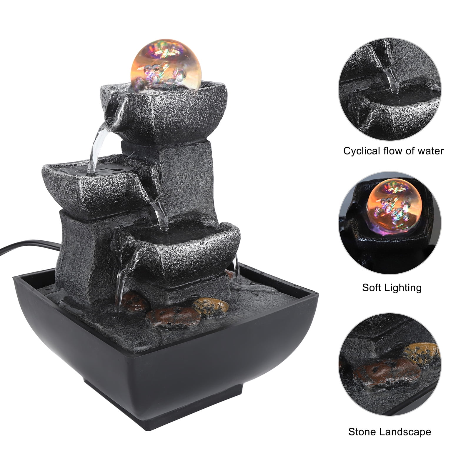 Fontaine D'intérieur Table Cascade Fontaine D'intérieur En Forme De Cascade Avec éclairage LED Pour Petite Fontaine Bureau Salon Décoration : la fontaine d'intérieur électrique Ferrisland est une pièce élégante de décoration d'intérieur qui s'adapte sur le comptoir de la cuisine, la table du salon ou le bureau Fontaine de Table pour Augmenter l'Humidité Petite Cascade avec Lumières LED pour Détente Avec son plaisir visuel et auditif unique, elle met immédiatement en valeur le style décoratif et apporte une touche de fraîcheur et d'élégance à votre environnement de travail et de vie. Fontaine d'intérieur avec éclairage LED plante brouillard cascade bureau fontaine Table fontaine pour salon. 161,27€. 1 vendus. Fontaine d'intérieur avec... Cadeau parfait : cette petite fontaine d'intérieur symbolise le calme, la chance et la prospérité et transmet une philosophie de vie de paix et de tranquillité. La combinaison parfaite de lumières et de flux d'eau crée non seulement un intérêt, mais crée également une atmosphère unique pour votre pièce. Utilisation polyvalente : la fontaine d'intérieur avec éclairage LED peut être parfaitement placée sur le bureau, dans le salon, dans la chambre ou au bureau. Avec lumières LED de couleur : cette fontaine d'eau d'intérieur est équipée de lumières LED à changement de couleur, de sorte que vous pouvez profiter des effets d'eau colorés même la nuit.