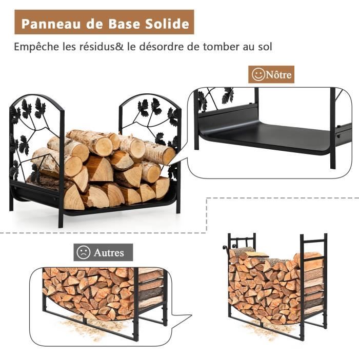 Résidence Appliquer Séance plénière rangement bois Décoration Glissant vaccinati Se pliant aisément pour un rangement compact, ce porte-bûches portable allie fonctionnalité et style, constituant un ajout à la fois pratique et charmant pour votre maison. Range Bois Capacité 270kg COSTWAY Range Buche Intérieur, Porte Buche Intérieur Support Bûches Métal Robuste Idéal pour une utilisation intérieure et extérieure, il peut aussi exposer joliment des couvertures ou des décorations comme des ballons. Ce porte-bûches décoratif est parfait pour le patio, le jardin, la cour ou à l'intérieur près de la cheminée. De taille compacte, le support permet est facile à transporter Range Bûche Intérieur, Porte-bûches Métal Charge 60 Kg Pour Rangement Bois Intérieur 43 X 40 X... 【Montage Simple】Pour un rangement compact, il suffit de retirer les 2 barres transversales puis de plier le cadre. 【Esthétique Attrayante】Doté d'un motif élégant sur les 4 pieds de soutien, ce rangement bois apporte une touche décorative à tout environnement. 【Pas Seulement pour Bois】Parfait pour ranger le bois de chauffage à l'intérieur ou à l'extérieur, cet anneau polyvalent peut aussi servir à stocker des couvertures, des textiles ou être un support original pour des décorations telles que des ballons. Sa base surélevée maintient vos bûches sèches et bien aérées. Le cadre métallique avec surface bien revêtue est résistant à la chaleur, assurant un attrait prolongé. Fabriqué en métal robuste avec une structure en A esthétique, ce support solide peut soutenir jusqu'à 270 kg.
