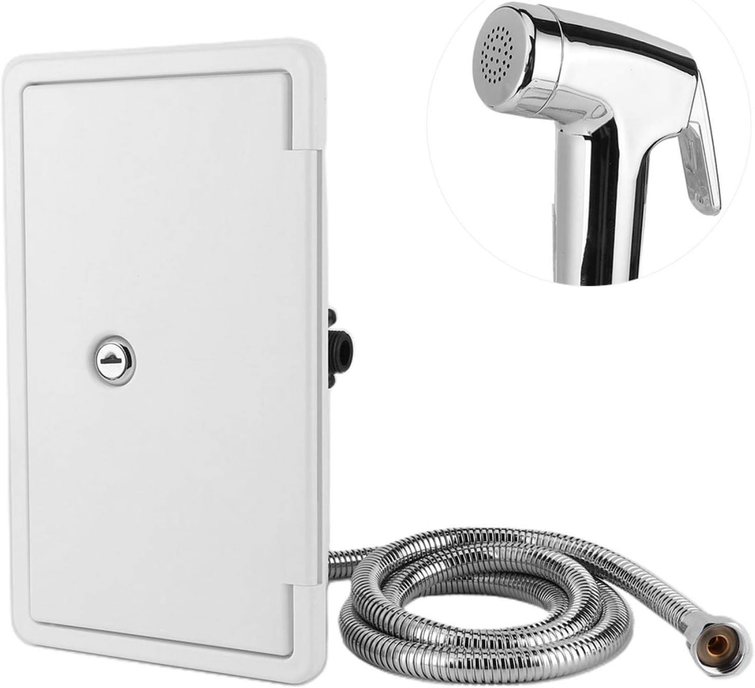 Douchette + Flexible + Connecteur - Pièce Détachée Boîtier REICH VR Kit fabriqué en plastique ABS durable, résistant aux UV pour garantir la longévité et la résistance à la décoloration. Douche Extérieure Caravane Pommeau De Douche Extérieur Pour Le Bain Et Douche D'eau Oide Sur Le Douche De Camping Vous pouvez profiter d'une douche même à l'extérieur, ce qui vous rend plus confortable. Retrouvez dans cette gamme étoffée nos robinets de lavabo, robinets mitigeur, flexibles de douche, douchettes, économiseurs d'eau ainsi que de nombreux accessoires pour parfaire vos installations. Le tout au meilleur rapport qualité/prix et proposé par de grandes marques d'équipement de véhicules de loisirs à la renommée internationale Conception professionnelle : cabine de douche pour caravane, le tuyau de douche comprend une lance de douche avec un interrupteur de réglage du débit (pas un... Peut être monté à l'extérieur d'un camping-car, d'une remorque ou d'une 5ème roue pour une expérience de lavage fluide pendant le camping. Bouton de réglage de l'eau chaude et froide pour fournir de l'eau froide et chaude. Le kit comprend : tuyau de douche de 150 cm, pommeau de douche avec fonction pause et boîte verrouillable avec clé. Interrupteur de réglage de l'eau chaude et froide intégré, vous pouvez facilement choisir la température de l'eau que vous voulez. La buse multifonction peut distribuer de l'eau sans appuyer longtemps, et elle est facile à utiliser en appuyant pour distribuer de l'eau. L'extérieur est équipé d'un pommeau de douche en acier inoxydable, ce qui est pratique.