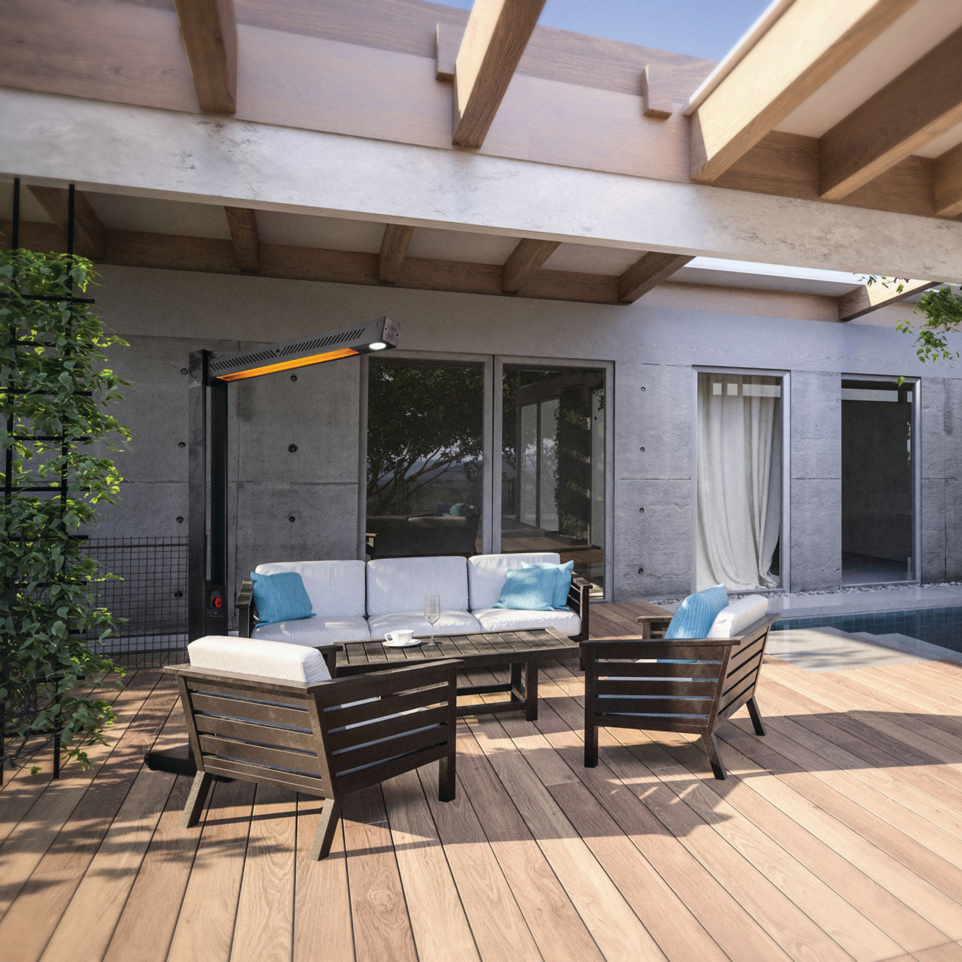 Il est donc peu encombrant et diffuse sa chaleur agréable par le haut vers l'environnement. Collection Petits Nandinas pour terrasse et balcon - Bambous sacrés... Contenu : Lampe avec télécommande à câble électrique de 1,8 m. Le chauffage de terrasse a une forme exceptionnelle. Chauffage Extérieur 1000W Télécommande Tapis D'extérieur Pour Terrasse Et Balcon Asti 180 X 300 Cm | Leroy Merlin Radiateur Infrarouge Pour Véranda Atelier Camping Dimensions : 50 x 50 x 30 cm (l x L x H) - Puissance : 1000 W - Longueur du câble : 1,8 m - Commande par télécommande. Elektra Lampe de plafond électrique à LED 1000 W Vous cherchez un chauffage esthétique pour votre terrasse ou votre balcon pour pouvoir vous asseoir dehors même par temps froid ou lors des soirées d'été plus fraîches avec vos amis ou votre famille ? Ici, vous trouverez une bonne façon de répondre à ce souhait. Avantages : Lumière LED blanc froid Télécommande ON-OFF Câble de 1,8 m Puissance 1000 W avec écran tactile Caractéristiques du produit : Couleur : noir., Tension : 220-240 V. Chauffage et éclairage : le spot de plafond Jet-Line vous permet de profiter de votre terrasse par tous les temps. Le spot de plafond et de terrasse Jet-Line est facile à monter et est livré avec un Chaîne de 0,5 m de long et d'une longueur d'environ Câble de 1,8 m., Écran tactile., Commande à distance possible. Les possibilités d'utilisation sont multiples. Contrairement à de nombreux autres radiateurs, il est suspendu comme une lampe. Le chauffage de terrasse a une forme exceptionnelle. Contrairement à de nombreux autres radiateurs, il est suspendu comme une lampe. Il est donc peu encombrant... Le chauffage est léger et peut donc être facilement emporté sur un lieu de camping. Se suspend comme une lampe pour économiser de l'espace. Chauffage Électrique Suspendu à Infrarouge 2000 W Chauffage Radiant de