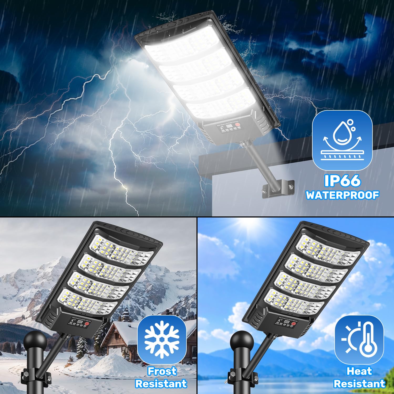 Équipé de 800 perles LED SMD5730 haute luminosité avec une longue durée de vie et une faible décroissance de la lumière pour fournir une super luminosité, le lampadaire solaire extérieur super lumineux à trois courbes au design unique fournit une illumination à 240 angles larges pour éclairer efficacement de grandes surfaces extérieures allant jusqu'à 3300 pieds carrés. Lampadaire Solaire Exterieur - Lampe De Sécurité À Détecteur De Pour la première utilisation, veuillez démarrer la lampe solaire extérieure étanche la nuit et régler le mode d'éclairage. éclairage Sécurité Jardin Lumière Solaire Extérieure Avec Détecteur De Mouvement IP65 étanche, 6500K Blanc Froid Lumière Lumiere Solaire Exterieur [LAMPADAIRE SOLAIRE SUPER LUMINEUX TOUTE LA NUIT] - Notre lampadaire solaire émet une lumière blanche froide de 6500K sans éblouissement qui dure toute la nuit. [CRÉPUSCULE À L'AUBE ET TÉLÉCOMMANDE] - La lampe solaire d'extérieur a 4 modes de fonctionnement: Mode 1: Crépuscule à l'aube, charge automatique pendant la journée et éclairage automatique la nuit. Lampadaire Solaire Exterieur - Lampe De Sécurité À Détecteur De... Le diamètre de montage du lampadaire varie de 1,5 à 4 pouces et la hauteur de montage recommandée est de 13 à 20 pieds pour les places commerciales, les rues, les cours, les parkings, les jardins, les pelouses, les parcs, les fermes ou les ranchs. [FONCTION DE DÉTECTION DE LA LUMIÈRE ULTRASENSIBLE] - La lampe de sécurité solaire ne peut pas être activée sous la lumière du soleil. Le choix d’un projecteur led solaire extérieur est guidé à la fois par des considérations écologiques, économiques et pratiques La télécommande permet un fonctionnement automatique sans entretien. Mode 4: Réglage de la minuterie : Différents réglages de la minuterie: 3 heures/4 heures/5 heures. Avant l'installation, couvrez le panneau solaire et appuyez sur le bouton de l'interrupteur pour tester le bon fonctionnement de la lampe. LEKIA Lampadaire Solaire Exterieur, 3000W 6500K Lumiere Solaires avec Détecteur de Mouvement, Télécommande, IP66 Étanche Spot Solaire Puissant Projecteur LED Exterieur pour Jardin, Yard, Parking Lot Des options sont également disponibles pour le montage sur les murs, les arbres, les balcons ou les lampadaires (lampadaires non inclus).