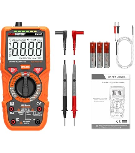 Grâce à la technologie True RMS et à la détection de tension sans contact (NCV), il assure des mesures électriques plus précises, professionnelles et sûres. Fonction de maintien de la date : Oui Large gamme d'applications Ce multimètre numérique professionnel convient au dépannage des appareils électroménagers, aux tests de circuits automobiles, aux mesures de laboratoire précises et plus encore, facile à gérer une large gamme de tâches de réparation et de test. Couverture des mesures essentielles Offrant plusieurs modes de mesure, notamment les tests de courant, de tension, de résistance, de capacitance, de fréquence, de température, de diode, de continuité et de cycle de service, répondant à divers besoins de mesure. Contenu du coffret 2 x cordons de test Poids net : 0,90 lb / 0,41 kg Multimètre Professionnel Ncv VEVOR Multimètre Numérique, 6000 Points, Testeur De Multimètre CC AC Voltmètre NCV, Ohm Volt Amp Testeur, Pour Tension, Courant, Résistance, Capacité, Continuité, Diode, Température, Rapport De Multimètre 6000 Points VEVOR Multimètre Numérique VEVOR, 4000 Points, Multimètre Nombre d'affichages : 6 000 points Caractéristiques principales Plus facile à utiliser Prend en charge la mesure de fréquence de tension alternative, l'identification des fils sous tension/neutre, la détection NCV (tension sans contact), l'affichage graphique à barres analogique, l'indication de polarité négative, l'indication de dépassement de plage, la conservation des données, l'enregistrement des valeurs max/min et l'indicateur de batterie faible. Tests de haute précision : Ce multimètre professionnel mesure avec précision la valeur efficace vraie des formes d'onde non sinusoïdales (ondes carrées, ondes en dents de scie et sorties d'onduleur). Ce multimètre numérique professionnel convient au dépannage des appareils électroménagers, aux tests de circuits automobiles, aux mesures de laboratoire précises et bien plus encore, et permet de gérer facilement un large éventail de tâches de réparation et de test Spécification Numéro du modèle de l'article : SS102 Conforme à la norme de sécurité CAT II 1000 V, un fonctionnement sûr sous haute tension 1 x sonde de température, 1 x pile 9 V VEVOR Multimètre numérique, 6000 points, testeur de multimètre CC AC Voltmètre NCV, Ohm Volt Amp Testeur, pour tension, courant, résistance, capacité... L'écran LCD de 6000 points assure des résultats clairs Un outil indispensable pour le dépannage d'appareils électroménagers, l'inspection des circuits automobiles, ainsi que le test et la maintenance des équipements électriques Compact et portable Conçu avec un corps léger et compact, ce multimètre est facile à utiliser, à transporter et à ranger.