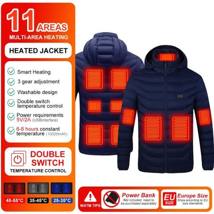 Corps chauffé et circulation sanguine: Il réchauffe le corps humain, consomme l'excès de chaleur, augmente l'oxygène et la fluidité du sang. Doudoune chauffante enfant hiver long chaud - Trench avec capuche - Plus de velours - MOBIGARLAN XD538Q - Noir Noir - Prêt-à-Porter 【Veste chauffante d'hiver】: cette veste chauffante électrique adopte le dernier design, très chaud et léger. Veste Imperméable Enfant Chauffante Générique Blouson Chauffant Garçon Et Fille Avec 3 Zones De Chauffage Vêtement Chauffant Activités Plein Air Amélioration du visage et modelage du corps : il active diverses fonctions entre la peau et favorise le métabolisme. contrôle intelligent, commande à un bouton avant et après le chauffage. Vestes chauffantes imperméables avec Veste chauffante 8 Zones USB Veste... 2 zones de chauffage créent de la chaleur dans les zones du corps (nuque et dos) pour garder votre corps entier vos mains enveloppées de chaleur La température de chaque zone peut être contrôlée indépendamment. Régler 3 règlements de chauffage (haut, moyen, bas) en approchant simplement sur le bouton CHALEUR DUAL-CONTROL 2: Vous voulez chauffer des zones spécifiques, comme le dos ou le corps avant seulment? Cette veste chauffante est livrée avec un nouveau bouton à double contrôle 【Contrôle de la température】: la veste chauffante avec température réglable contrôlée à trois vitesses. L'ajout d'une fermeture à glissière et d'un design de bouton pour s'adapter au corps de l'enfant est le meilleur cadeau pour votre enfant cet hiver pour lui donner de la chaleur pendant les hivers froids. 【Prend en charge le lavage à l'eau】: l'interface d'alimentation de la veste chauffante est isolée et imperméable. Technologie de chauffage, profitez de l'hiver ! Il est parfait pour le camping, la randonnée, la pêche, la chasse, les gardes debout ou activités de plein air quotidiens.