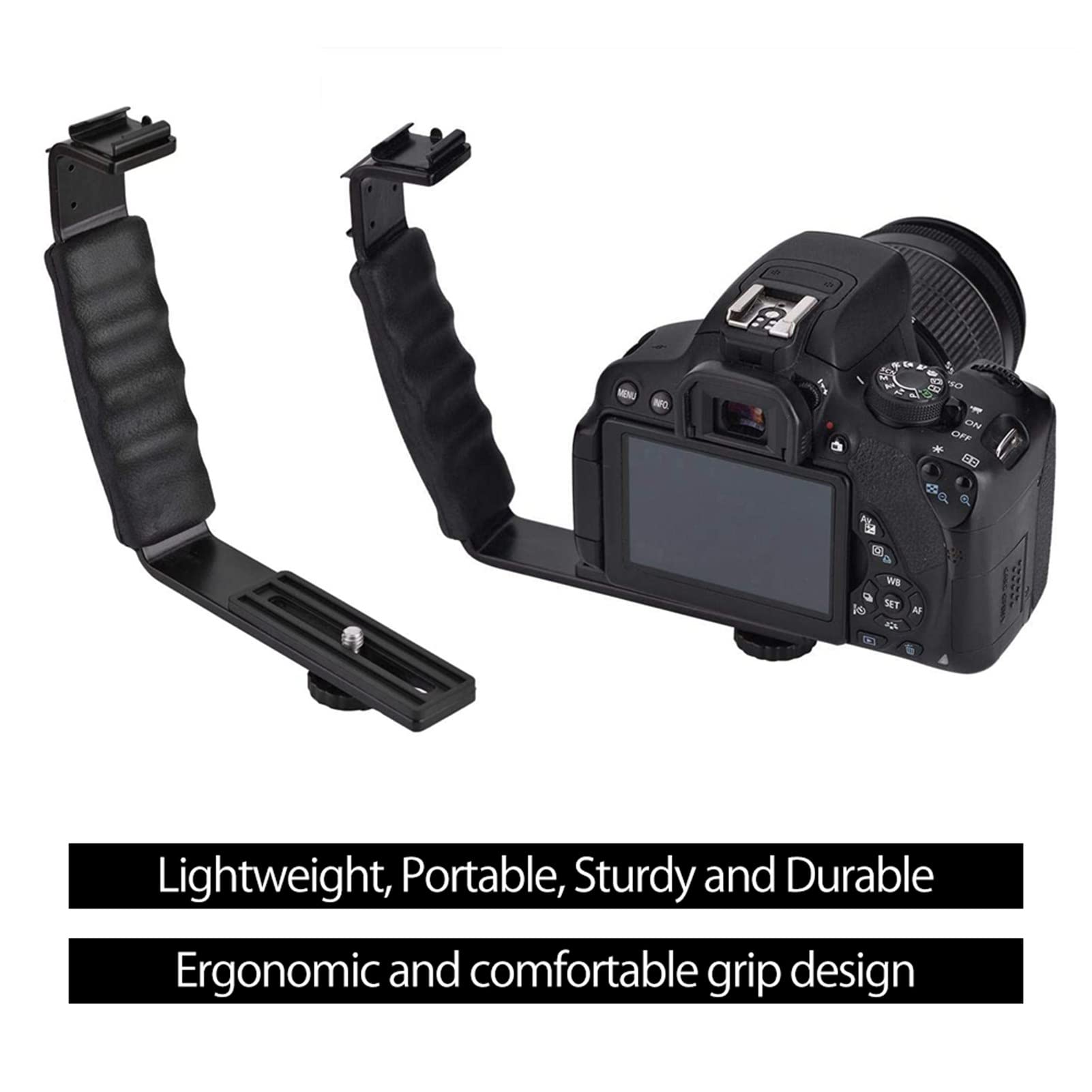 Remarque : La caméra n'est pas incluse. Il y a deux baskets, vous pouvez monter flash et autre accessoire. Adaptateur Hot Shoe Double EBTOOLS Appareil Photo Numérique à Carte 8x Zoom Carte Appareil Photo Support Flash Appareil Photo Microphone USB, FURINE Studio Microphone avec Lumière Ronde et Type C... Caractéristiques : Matériau : alliage d'aluminium., De couleur noire., Fil : 1/4. Description du produit EBTOOLS Appareil Photo Flash L-Support Double Hot Shoes Support de Montage Adaptateur Mount Microphone DV Lumière LED avec Filetage 1/4(Noir) Description : Fabriqué en matériau de qualité, cet article est robuste,, portable et léger. Si vous avez des problèmes, n'hésitez pas à nous contacter. Longueur de la poignée : environ 13 cm., Poids approximatif : 133 g. Haute qualité Fabriqué en matériau de qualité, léger, résistant et. ★【Conception en forme de L humanisée】La conception en forme de L est idéale pour les prises horizontales ou verticales avec une poignée confortable. Deux chaussures chaudes pour plus d'accessoires Avec deux chaussures chaudes, il offre une combinaison multiple pour monter le flash avec d'autres accessoires. Ces adaptateurs se fixent sur la griffe porte-accessoires et offrent 3 emplacements avec filetage 1/4 chacun. Tu peux y installer un micro, une lumière LED, un... Contenu : 1 support en L. ★【 】Nous offrons 24 mois de et 30 jours de pour tous les produits EBTOOLS, et nous sommes entièrement responsables de tout problème avec le produit. Nous vous offrons une expérience agréable. EBTOOLS remplacement de l'embout de canne à support quadruple Pointe de
