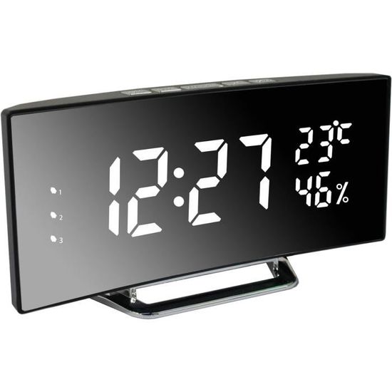 【Bon cadeau】: un bon cadeau pour les amis, la famille et les enfants, ce n'est pas seulement un réveil multifonctionnel, mais aussi une excellente décoration pour la chambre à coucher, le salon et l'étude, qui correspond parfaitement au style de décoration de la maison. Réveil Numérique Miroir Réveil Numérique, Horloge Numérique LED Horloge Digitale Réveil Matin Réveil écran 6.5 Pouces Température Humidité Réveil numérique * 1 , Base * 1 Radio Réveil avec Double Écran LED, Réveil Numérique de Chevet avec... 【Deux modes d'affichage】: notre réveil miroir a deux modes d'affichage pour votre choix. Lorsque vous sélectionnez le mode DP - 1, l'alarme affiche toujours l'heure; Lorsque vous sélectionnez le mode DP - 2, l'alarme affiche l'heure et la date et bascule automatiquement. Réveil numérique, Grand écran LED de 6,5 Pouces, réveil de Chevet avec... Le réveil de la chambre parfaite offre les meilleures conditions de vie pour vous et votre famille. 【Grand écran LED miroir】: notre réveil numérique est équipé d'un écran LED miroir de 6,5 pouces, vous pouvez voir clairement l'heure même si vous êtes à 30 pieds de votre chambre. Pendant ce temps, l'alarme s'ajuste automatiquement à haute luminosité de 7: 00 à 18: 00 et à faible luminosité de 18: 00 à 7: 00 pour une meilleure expérience de sommeil. FRTmvg Réveil numérique à écran LED de 6,5 – Luminosité Le miroir acrylique est spécialement traité pour ne pas se gratter facilement. (Remarque: à l'exception du bouton SNZ / light).