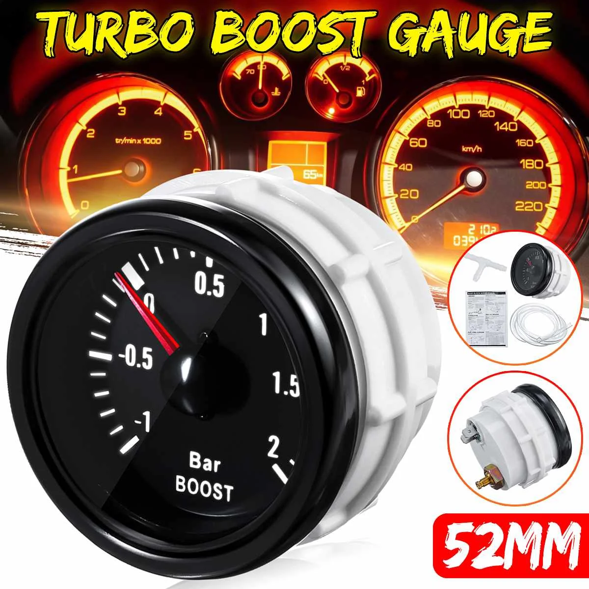 Longueur du câble : 51 cm. Jauge De Turbo Boost Électrique Lumière Led Blanc Jauge De Turbo... Compatibilité : Pour voiture 52 mm de diamètre. Matériaux : métal et plastique. Jauge Turbo Boost 52mm Jauge Turbo Boost Jauge Turbo Numérique MOCNT 52mm - Pression Boost -1 à +3 BAR Lumière Bleue Jauge Voiture 52mm Manomètre Turbo 12V Placement sur véhicule : avant., Compatibilité universelle : oui. Ajoutez un look et une sensation de course à votre conduite et léger. Distance entre les deux boulons : 45 mm. Contenu du paquet : 1 jauge de barre de suralimentation., 1 tuyau en PVC., 1 raccord en T. Construction élégante et légère : la combinaison de matériaux métalliques et plastiques crée un composant élégant mais léger qui complète n'importe quel tableau de bord tout en minimisant le poids supplémentaire. Caractéristiques : État : Couleur : gris. Numéro de pièce OEM : ne s'applique pas., Tension : 12 V., Longueur : 47,5 mm., Diamètre : 57 mm. Installation facile : la jauge de turbocompresseur comprend un capteur de pression de suralimentation, un faisceau d'alimentation de 1,94 m et des instructions d'installation qui rendent le processus d'installation rapide et facile Installation par un professionnel fortement recommandée. Instructions d'installation incluses : livré avec un manuel en anglais pour une installation facile ; nous vous recommandons de rechercher des services d'installation professionnels pour obtenir les meilleurs résultats. Medidor Turbo Boost, Medidor LED Turbo Boost De 52 Mm / 2 Pulgadas 7 Instalacion Sin Esfuerzo