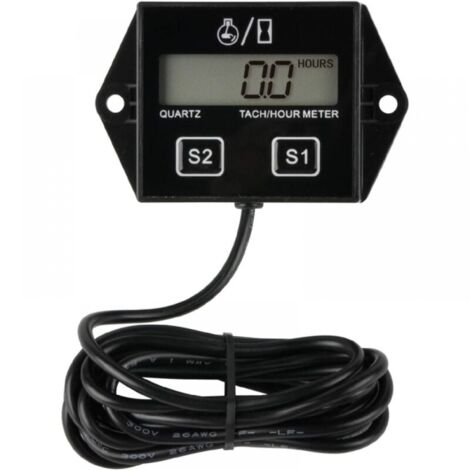 Tachymètre étanche Avec Compteur Heures DDayuanwei Tachymètre Numérique Portable à Induction Pour Tronçonneuse 2 Temps 4 Temps Petit Moteur Tachymètre écran LCD Tach Gauge Pour Tronçonneuse Tondeuse à Gazon Moteur Essence Minuté En Minutes Tachymètre Tronçonneuse Tachymètre à Induction Numérique pour Petit Moteur, écran LCD, pour Tronçonneuses, Tondeuses à Gazon, Motos, Plage de Synchronisation 1-99999 Minutes Tachymetre Moto, Tachymetre Numerique,Inductif Compteur Horaire pour 2 temps et 4 temps Petit... Spécifications: Matériau: ABS Couleur: noir Taille: 52 x 19 x 46., 6 mm Méthodes de mesure: 1., Placez la jauge manuelle entre 3 et 5 cm du câble de la bougie, puis testez., 2., Après avoir installé une extrémité du câble électronique dans le trou du boîtier de la montre électronique, utilisez une pince métallique pour le fixer à la gaine du câble de la bougie pour la mesure par induction. 【Conception inductive】 La conception inductive du compte-tours numérique permet de mesurer la vitesse à proximité du fil de la bougie du moteur, il peut également être connecté au câble de la bougie. 【Fonction de remise à zéro automatique à l'heure NulL】 Le tachymètre numérique dispose d'une fonction zéro et d'un affichage du compteur horaire jusqu'à 10 000 heures, après quoi il est remis à zéro. Le bouton MODE permet de régler le mode de vitesse. Le compte-tours peut afficher jusqu'à 30000 RPM. 【Facile à utiliser】Lorsque le tachymètre inductif est allumé, il affiche le régime actuel. 【Tachymètre spécialement conçu pour les tronçonneuses】Le tachymètre numérique peut être configuré avec une alarme de temps d'entretien programmable pour vous rappeler quand changer l'huile ou effectuer d'autres services d'entretien. Facile à utiliser et adapté à une variété de petits moteurs, ce tachymètre numérique garantit des performances fiables à partir de 30 000 tr/min