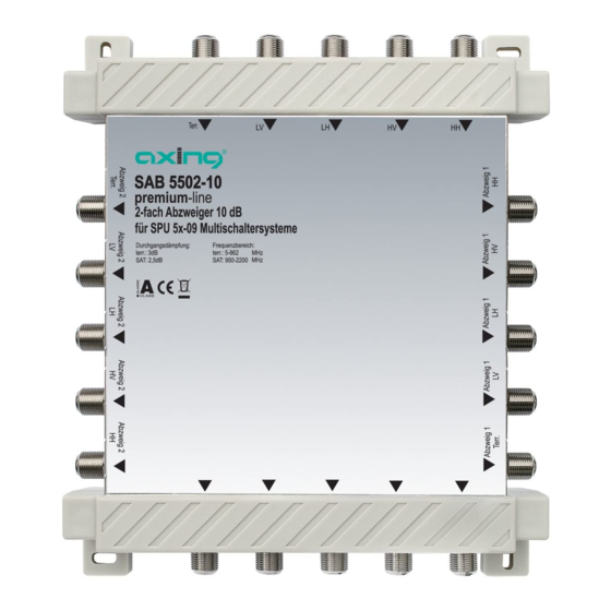 La sortie de la ligne principale présente une perte de débit faible, de sorte que plusieurs composants de distribution peuvent être utilisés dans une rangée. En raison de l'amortissement directionnel plus élevé, les prises de branche peuvent être utilisées sur une branche, qui ont des valeurs d'amortissement plus faibles que celles à travers les prises. Toutes les connexions F ont des ressorts de contact plaqués or. La sortie DC n'existe que dans le coffre. Axing SAB 1-12 Cable splitter - buy at À la sortie de la branche, l'atténuation est plus élevée. Une branche ne peut être utilisée que lorsqu'aucune commutation de niveau de polarité n'est utilisée (solution de câble unique unique ou pour les distributions entre LNB et multiswitch). Dérivateur satellite AXING SAB00420 - 4 directions - Atténuation 20 dB... En utilisant le socle, les raccords à vis F sont plus facilement accessibles. Cette branche est utilisée pour distribuer des signaux par satellite (télévision par satellite et radio). Le boîtier métallique avec connexions F est hautement blindé, le niveau de blindage est de classe A. Branchement Câble Coaxial 5-2400MHz Axing SAB 1-12 Dérivateur 1 Direction Satellite Et Terrestre Dérivateur Avec Passage Dc N° d’article : SAB 1-12 € 7, 05 y compris TVA en vigueur. hors frais d’expédition en stock, Délai de livraison: 3-4 Jours ouvrés - Marquer pour comparer Se connecter Une base de montage en plastique amovible est incluse.