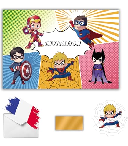 20 Cartes Fête Thème Dessin Animé Carte Personnalisable Cartes Invitation Anniversaire à Gratter Super Héros - Spider Iron Man Mixte, Personnalisables Avec Enveloppes Personnalisation Facile Carte Invitation Anniversaire Personnage D'araignée De Dessin Animé Mignon Modèle 3d | Photo Premium LIVESTN Cartes d'invitation pour Enfants, 12 Stich, Set de Cartes d... Contenu du produit: Cet ensemble comprend 20 cartes d'invitation sur le thème de l'araignée, 20 enveloppes assorties et 20 étiquettes d'autocollants, beaucoup pour couvrir tous vos besoins d'invitation de fête. Taille appropriée: la carte d'invitation de fête mesure 11,5x11,5cm, offrant un grand espace pour noter les détails essentiels de la fête. L'enveloppe, dimensionnée à 12,5x17,5cm, correspond à la carte pour un scellage et un envoi faciles. En raison de la différence entre les différents moniteurs, il peut exister une légère différence de couleur. Chaque autocollant mesure 3,3 cm de diamètre, ajoutant une touche décorative à vos invitations. Conception spéciale: Conçue avec une palette de couleurs rouge audacieuse, ces invitations et autocollants d'anniversaire d'araignée disposent de motifs Web complexes d'araignée qui donnent vie au thème. Ces cartes d'invitation de fête sont plus que des invitations, c'est une façon amusante de faire exciter vos invités pour votre moment spécial. Son grammage robuste de 18 pt et son aspect naturel en font le choix idéal pour des événements élégants et intemporels. Conçu exclusivement pour...