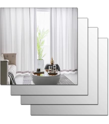 COUXILY Lot de 4 miroirs Autocollants HD – 35,5 x 30,5 cm Décoration multifonctionnelle] : le film miroir autocollant polyvalent est idéal pour votre chambre, coiffeuse, placard, couloir, salon, salle de bain, dressing, salle de sport ou bureau - presque n'importe quelle pièce peut être mise en valeur avec cet élégant miroir Miroirs Carrés Autocollants 35x35 COUXILY Lot De 4 Miroirs Carrés Autocollants - 35 X 35 Cm - En Miroir Autocollant Miroir Adhésif Ce n'est pas comme les autres miroirs souples en PET et les nôtres ont de meilleures performances en termes de dureté et d'épaisseur. Les miroirs sans cadre offrent un style moderne, adaptés à la plupart des styles décoratifs. Grands miroirs en acrylique incassables, sans danger pour les enfants. Chaque panneau de 35 x 35 cm est fabriqué en acrylique léger et incassable... [Décoration murale créative DIY] : les miroirs autocollants peuvent être combinés à volonté pour obtenir des miroirs pleine longueur ou des miroirs plus grands pour en faire un excellent décor dans votre chambre et rendre votre pièce plus lumineuse. [Décoration multifonctionnelle] : le film miroir autocollant polyvalent est idéal pour votre chambre, coiffeuse, placard, couloir, salon, salle de bain, dressing, salle de sport ou bureau - presque n'importe quelle pièce peut être mise en valeur avec cet élégant miroir. L'adhérence dure longtemps. [Installation rapide et facile] : en quelques minutes, vous pouvez fixer le miroir au mur avec les pastilles adhésives fournies, sans percer de trous dans les supports muraux.