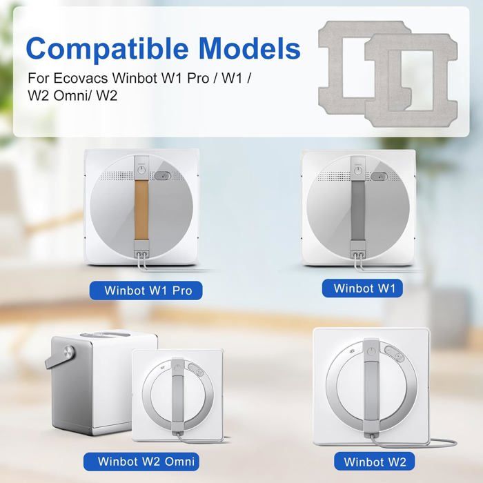Veuillez vérifier le modèle de votre robot avant d'acheter un kit. Chiffons Nettoyage Vitres Haute Absorption MeYuxg 6 Tampons De Nettoyage Adaptés Ecovacs Winbot W1/ W1 Pro/ W2 / W2 Pro Robot Lave Vitre, Chiffons De Nettoyage Lavables Et Interchangeables, Pour Ecovacs Winbot, Pour Nettoyage Vitre Chiffons Microfibre Winbot W2 L'installation est terminée. NETTOYAGE EFFICACE: Les chiffons de rechange, au traitement de surface fin et à la finition soignée, empêchent l'accumulation de peluches. FACILE À UTILISER: Les lingettes sont conçues pour être faciles à utiliser. NETTOYAGE EFFICACE DES VITRES: Vous recevrez 12 lingettes nettoyantes que vous pouvez remplacer à tout moment. Seeing U W2 Rechange Kit Kit Rechange Serpillère SEEING.U W2 - 4 Microfibres Pour Robot Lave-Vitre | Nettoyage Vitres Robot Lavavetri Installation: Assurez-vous qu'il est bien en place et démarrez le robot., Propre. MATÉRIAU DE HAUTE QUALITÉ: Ce tampon de nettoyage est fabriqué en fibre de coton haute densité avec une texture éponge, une forte absorption d'eau et une technologie de couture fine. Matériau de haute qualité: Ce tampon de nettoyage est fabriqué en fibre de coton haute densité, un tissu texturé comme une serviette, et bénéficie d'une technologie de couture sophistiquée et d'une forte capacité d'absorption d'eau. Utilisés avec le robot laveur de vitres, ils éliminent facilement tous les types de saletés sur les vitres, y compris la poussière, les résidus de résine, les taches et la graisse. Une fois sèches, elles peuvent être réutilisées pendant 2 à 3 mois, selon la propreté de l'environnement et la fréquence d'utilisation. Largement compatible avec les modèles grand public ce tampon de nettoyage est spécialement conçu pour les robots de nettoyage de vitres de la série Ecovacs Winbot Pièces pour Ecovacs Winbot W1 Pro/W1/W2 Omni/W2 Microfibre Serpillère Rechange Kit, avables... Fixation au robot: Fixez le chiffon humide au robot laveur de vitres en suivant les instructions. Nettoyage efficace: Le robot lave-vitres élimine facilement tous les types de saletés sur les vitres, y compris la poussière, les résidus de résine, les taches et la graisse. Utilisé avec votre robot laveur de vitres, il nettoie rapidement les taches et absorbe l'humidité sur les vitres. Lingettes nettoyantes parfaitement compatibles Lingettes de rechange compatibles avec le robot laveur de vitres Ecovacs Winbot W2 PRO / W2 PRO Omni / W2 Omni / W2 / W1 Pro / W1., Caractéristiques: Matériau: Microfibre Dimensions de chaque lingette: 26 cm x 26 cm Contenu: 12 lingettes nettoyantes Installation: Fixation à la machine grâce au velcro situé sous le chiffon Entretien: Lavable en machine, réutilisable jusqu'à 60 jours Facile à utiliser Humidification du chiffon: Humidifiez légèrement le chiffon avec suffisamment d'eau, en évitant toute humidité excessive.