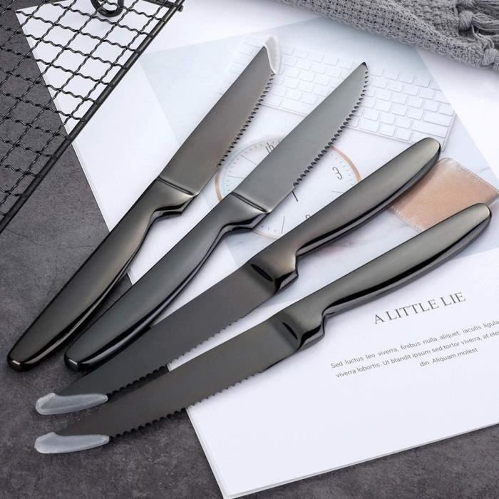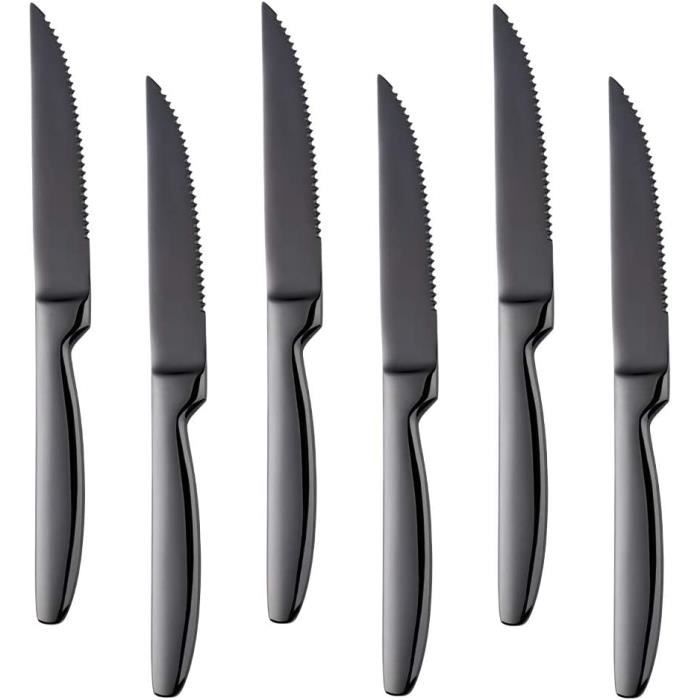 Ne pas conserver longtemps dans un endroit humide. Set de 6 Couteaux à Steak en Acier Noir - Lustrobois [Polyvalent] : Cet ensemble de couteaux de cuisine de 6 pièces est un excellent achat pour les couverts de cuisine. Couteaux De Table Sécurité Lave-vaisselle Bloc De 6 Couteaux à Steak Microdentés - Manche Ergonomique Noir Avec Filet Rouge Couteaux Acier Inoxydable Lave-vaisselle Laver les mains avec du savon doux. Soyez prudent lors du nettoyage de la lame pour éviter de causer des blessures Laguiole en Aubrac set de couteaux à steak 6 pièces bouleau, 62C99BHIH... Cet ensemble de couteaux à tomate est très pointus. [Taille du produit] : La longueur totale de ce couteau de cuisine serré est d'environ 23,3 cm (9,17 pouces), la longueur de la lame est d'environ 12 cm (4,72 pouces), la longueur de la poignée est d'environ 11,3 cm (4,44 pouces) et le poids total du jeu de couteau de cuisine de 6 pièces est de 183 grammes. Taille du produit] : La longueur totale de ce couteau de cuisine serré est d'environ 23,3 cm (9,17 pouces), la longueur de la lame est d'environ 12 cm (4,72... Non toxique, sans nickel, sûr à utiliser. La lame est serrée, très pointue, et vous pouvez facilement couper toutes sortes d'aliments avec elle. [Conception intime] : La poignée du couteau à tomate est conçue avec des lignes et une ergonomie, ce qui peut rendre votre paume et la poignée parfaitement adaptées, et la poignée antidérapante peut améliorer l'équilibre et la sécurité, avec un poids approprié et une adhérence confortable, vous donnant une bonne expérience de coupe. Sécurité lave-vaisselle Une maintenance adéquate peut prolonger la durée de vie de ce couteau. Il peut être utilisé comme couteau à tomates, couteau à fruits, couteau à légumes, vous pouvez également l'utiliser pour couper le pain, couper le steak ou étendre la confiture, il est parfait pour vos trois repas par jour et l'après-midi à l'heure du thé.