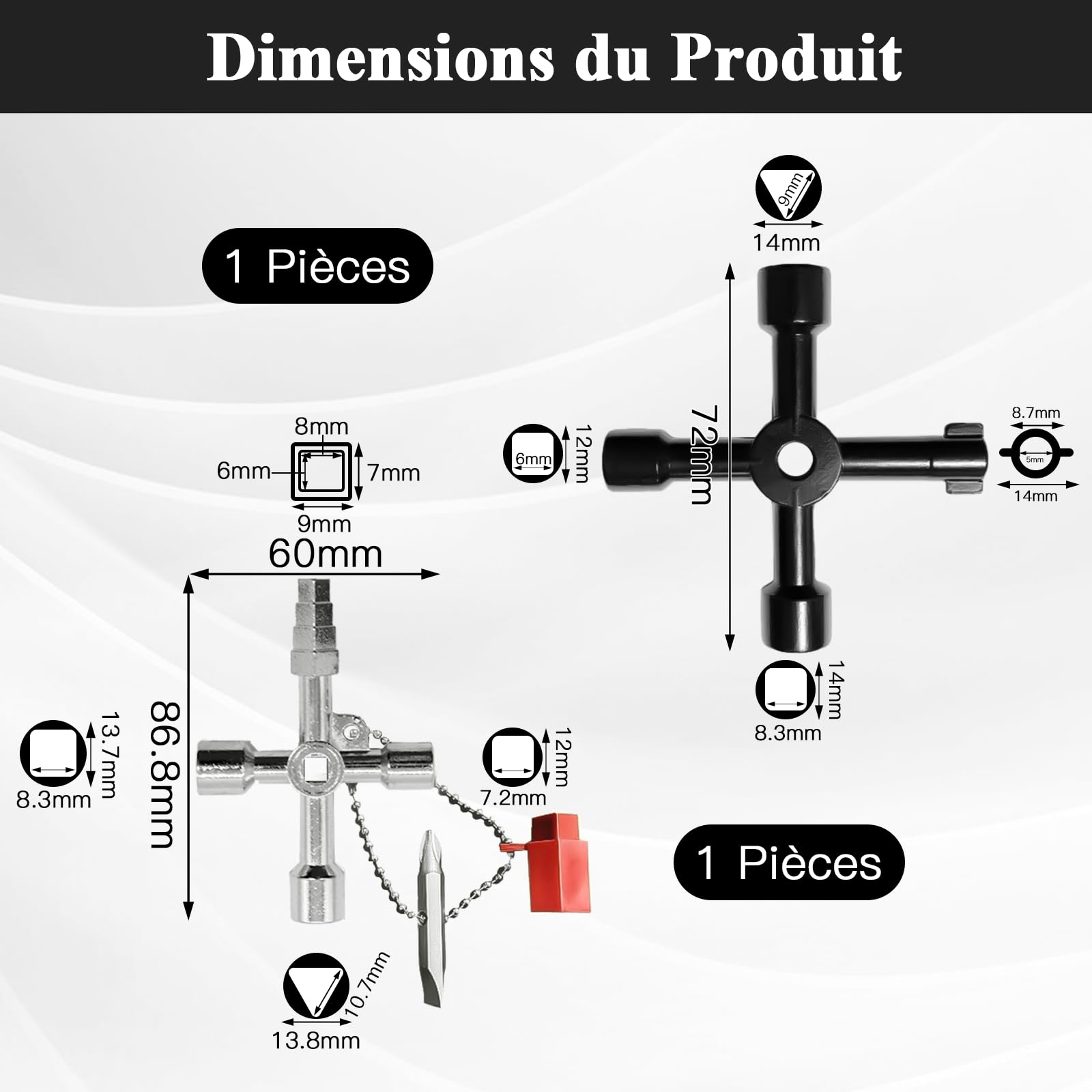 Cela réduit la fatigue lors d’une utilisation prolongée et rend les opérations de vissage ou d’ouverture plus fluides. Conçu pour couvrir une variété de besoins allant des coffrets EDF et armoires électriques aux vannes d’eau et radiateurs, cet ensemble est idéal pour les réparations domestiques, la maintenance et les activités extérieures. Clef Triangle Lot De 12 Clés Multifonction Triangle Passe Partout Avec Boucle D Outils Universels Zinc Clé gaz, pour ouverture des coffrets edf-gdf, gaines gaz et placards... Chaque clé bénéficie d’un traitement de trempe haute fréquence et d’un polissage galvanique lisse, offrant une excellente résistance à la rouille et à la corrosion. Ce lot de 12 clés multifonction est spécialement conçu pour répondre à une large gamme de besoins en matière de maintenance, de bricolage et d’usage professionnel. Ensemble complet et polyvalent : Ce lot de 12 clés multifonction comprend 1 clé noire 4-en-1, 1 clé argentée 5-en-1 en forme de pagode, 4 clés en alliage de zinc (triangle, plat, carré), ainsi que 6 boucles d’escalade robustes. Compatibilité universelle : Conçues pour s’adapter à 99 % des serrures et vannes triangulaires, ces clés conviennent à de nombreuses applications comme les coffrets électriques, boîtes de distribution, compteurs d’eau, ascenseurs, structures de canalisations et radiateurs. Leur finition brillante et résistante assure une utilisation prolongée même dans des environnements exigeants ou à l’extérieur. Chaque clé est fabriquée en alliage de zinc forgé, offrant robustesse, légèreté et résistance aux chocs, avec un traitement de trempe et un polissage galvanique qui garantissent une excellente durabilité et une protection antirouille. Leur conception soignée assure une manipulation efficace, que ce soit pour des tâches simples ou des interventions techniques plus complexes. Grâce à leur conception portable, elles peuvent être attachées à un porte-clés, une ceinture ou une boîte à outils, assurant un accès rapide à tout moment. Fort Boyard » : Passe-partout et Passe-muraille pourront enfin s... Conception ergonomique et pratique : Pensées pour le confort, ces clés disposent d’une poignée ergonomique qui épouse la forme de la main et permet une meilleure prise en main. Pratiques pour les déplacements, elles garantissent que vous ayez toujours l’outil adéquat à portée de main, que vous soyez en voyage, en randonnée ou en intervention rapide. Ergonomiques et faciles à manipuler, elles réduisent la fatigue des mains lors d’une utilisation prolongée et permettent d’effectuer vos opérations de vissage ou d’ouverture avec efficacité. TRI001 - Clé Coffret Edf Triangle 11mm - CATU