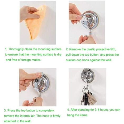 Crochet Sans Perçage Fort Crochets À Ventouse Très Puissants, 4 Kg, Pour Salle De Bain Support Adhésif Sans Perçage 4kg 4pcs ventouse crochets porte-crochet de mur en multi-usage pour salle Salle de bains Crochets,Crochet à ventouse forte pour salle de bain et... Ces puissants crochets ABS créent un vide entre la ventouse et la surface lisse comme le carrelage, les miroirs, les surfaces métalliques. Cela rend les crochets très fermement fixés. Utilisez les crochets à ventouse pour décorer vos fenêtres ou vitrines. Crochets muraux en dix couleurs différentes. Adhésion parfaite sur carreaux, métal, cristal et autres surfaces lisses - comme chevillé ! Vous fixez serviettes de bain, peignoirs, sacs, blousons et autres objets jusqu'au poids de 4 kg sans Coloris disponibles : bleu, jaune, jaune-pastel, vert, orange, rose vif, rouge, noir, blanc - égaleme Accrochez vos serviettes de bain, peignoirs, gants de toilettes, fleurs de douche, torchons ou ustensiles de cuisine. Utilisez les crochets à ventouse pour décorer vos fenêtres ou des vitrines de magasins