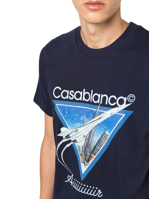 Casablanca Men's La Liaison T-Shirt in White Casablanca Casablanca Maroc Drapeau Voyage Souvenir Badge Stam' Autocollant Vêtement Décontracté Manches Courtes Casablanca Men's T-Shirt In Black Casablanca Le Joueur Léger, Coupe classique, manche à double couture et ourlet à la base