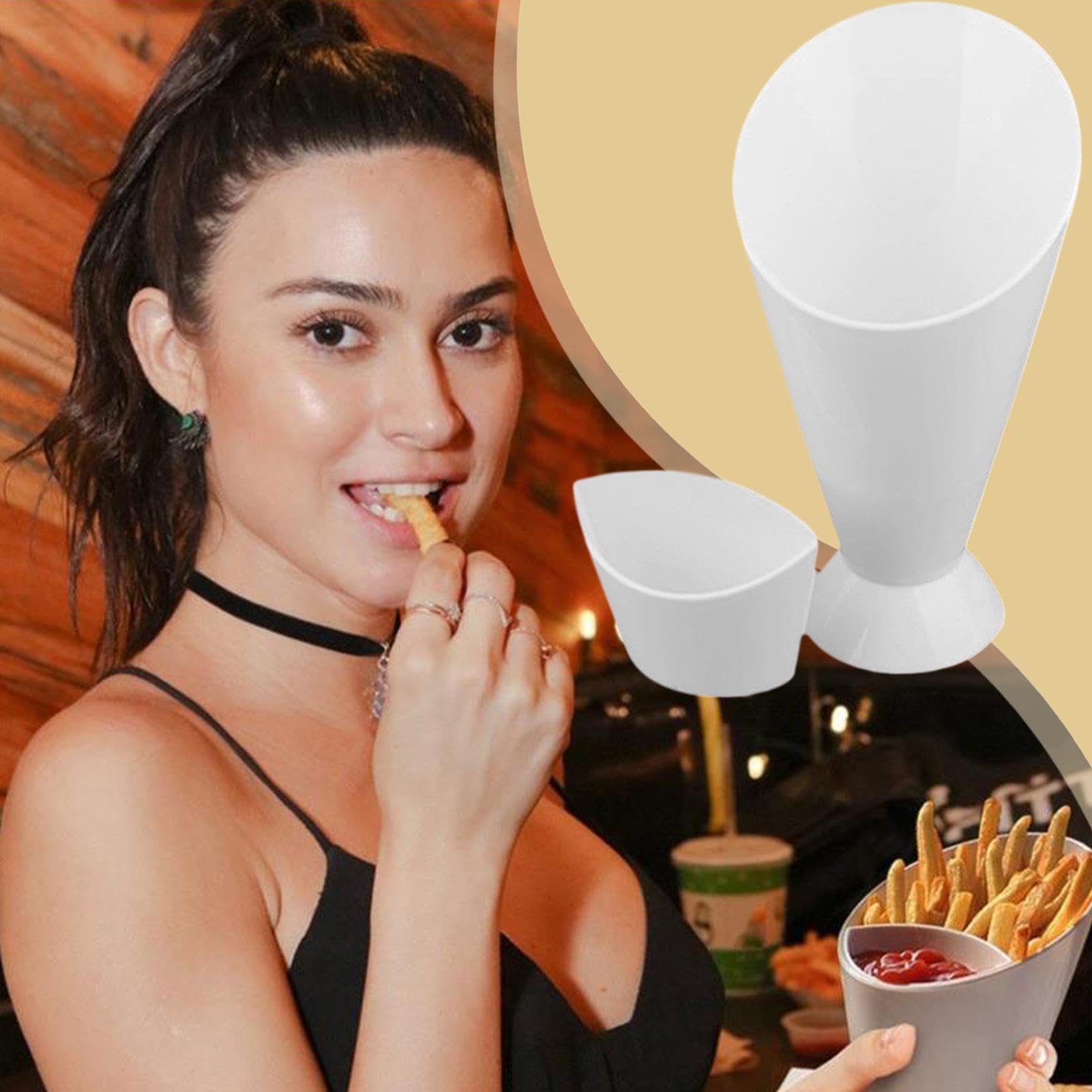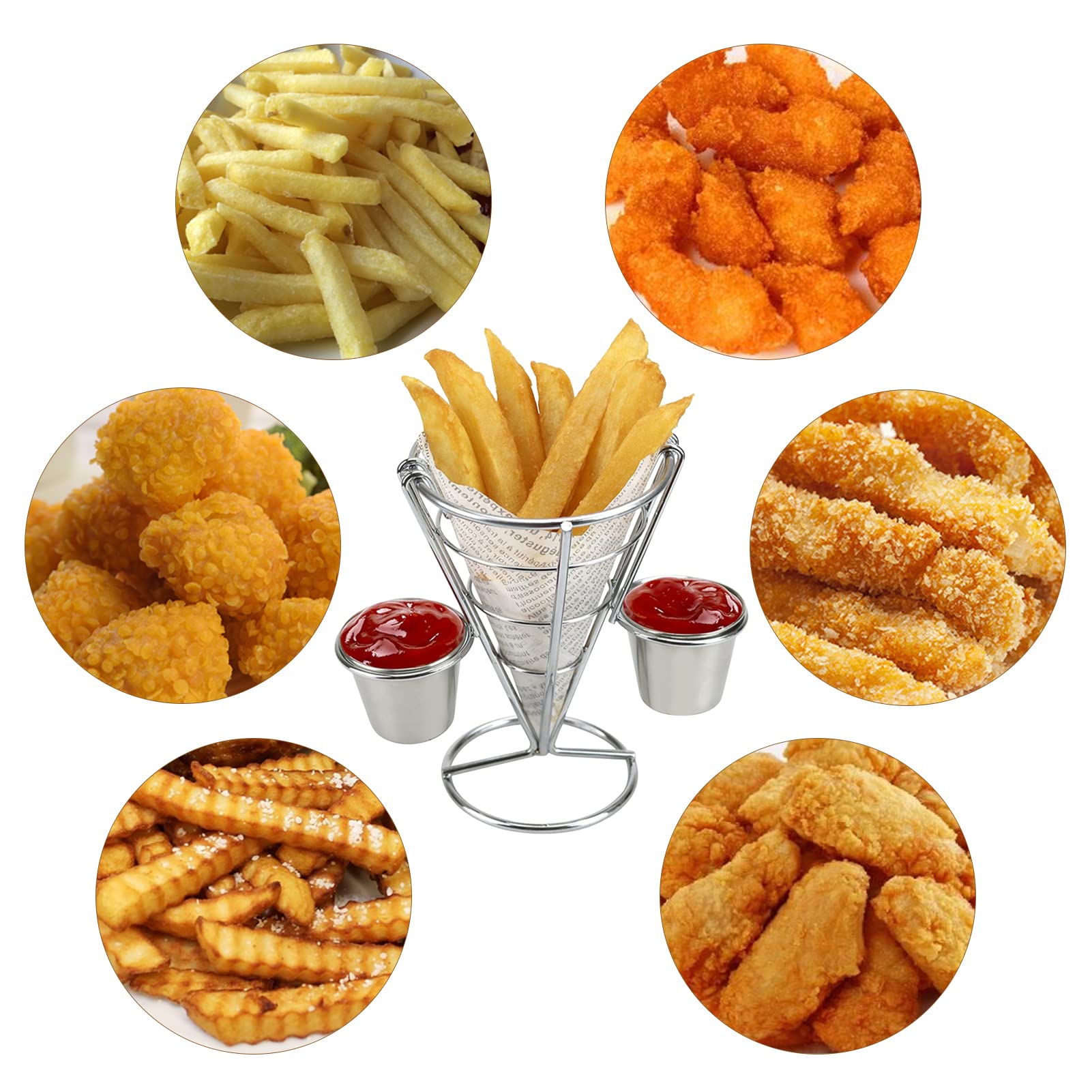 Améliorez la de vos repas et rendez chaque événement inoubliable avec cet accessoire polyvalent Récipient Frites Sauce Compartiments Ensemble Porte-frites Et Porte-sauce,porte-frites Et Porte-sauce | Porte-sauce à Frites 2 En 1 - Récipient à Pop-corn Portable, Cônes Multifonctionnels Pour Aliments Avec Doigts, Avec Gobelets à Tremp Cornet Frite Doté de compartiments séparés pour les frites et d'un porte-sauce pratique et inodore. 2 pièces Porte-frites Buffet Cône Dip Porte-gobelet Snack Apéritif... Qualité alimentaire : dites adieu aux déversements et aux miettes avec le support à frites et à sauce antidérapant et compact, fabriqué à partir d'un matériau PP sûr de qualité alimentaire, inodore et facile à nettoyer. Snacking sans effort : doté d'un corps lisse et d'un porte-sauce pratique, ce support garde les aliments frais et est simple à nettoyer, grâce à sa conception de tasse à friture divisée 2 Pièces Porte-Frites Porte-Monnaie De Plateau De Jetons De Table De... Fini les dégâts mélangés ou les frites rassis : notre produit garde vos collations bien entretenues et pratiques. Commodité de nettoyage facile : gardez vos frites et sauces propres et organisées grâce aux compartiments séparés de notre support et à la tasse à sauce intégrée. Transformez le plaisir des repas : profitez d'un repas en plein air sans effort avec notre porte-frites et sauce ! Panier Frites Support à Frites Double Avec Porte-Sauce - Métal - Pour Snacks, Fêtes, Restauration - 14,5x10 Cm Support Snacks Avec Sauce Empêche le mélange : notre porte-frites et sauce révolutionne l'heure des collations avec sa fonction de conception unique qui sépare les aliments en compartiments organisés. Idéal pour une utilisation en famille ou au restaurant, il est parfait pour les pique-niques, les barbecues et de multiples occasions.