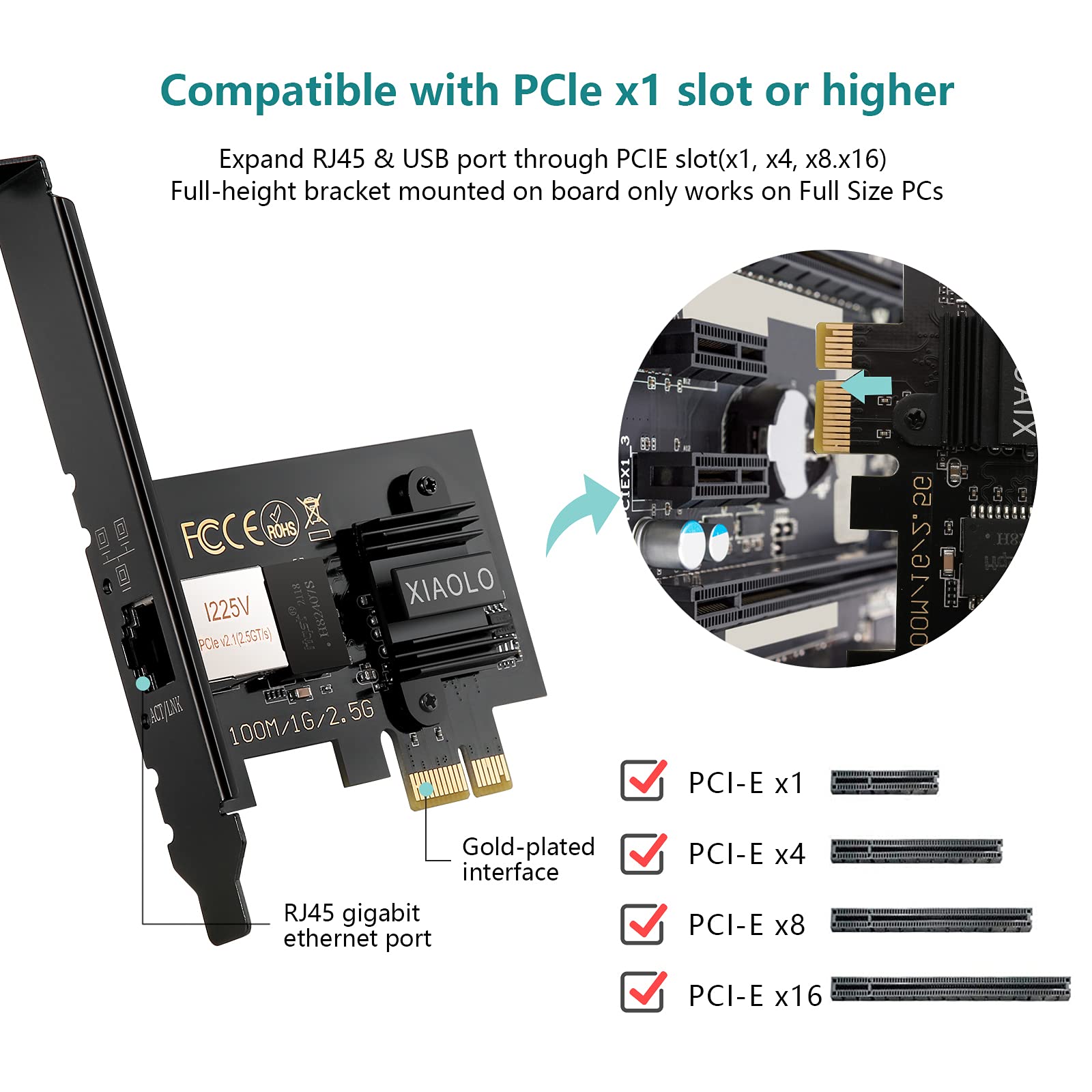 Carte RéSeau Gigabit PCI Express 2.5GBase-T pour les Jeux, le Streaming Combiné avec la dernière technologie 2., 5GBase-T, qui est 2,5 fois plus rapide que les adaptateurs Gigabit typiques, garantissant des données fluides. Routeur Wifi XIAOLO 2.5GBase-T PCIe Adaptateur Réseau 2.5G/1G/100Mbps PCI Express Gigabit Ethernet Carte RJ45 LAN Carte Réseau Pour PC Support Windows 10 Et Linux Jeu De Puces Pour I225V Carte LAN Intel I225V Elle a une faible consommation d'énergie, une faible latence et une transmission plus stable, et il n'est pas facile de provoquer une perte et une distorsion de paquets. 2.5Gb Carte Réseaux Pcie Realtek Rtl8125B Chip 2500-1000-100Mbps 2... Adaptador de red Pcie de doble puerto 2,5G/1G/100Mbps PCI Express I225V... 【Prise en charge du système d'exploitation】Cet adaptateur réseau est compatible avec le système d'exploitation Windows 10S/10RS5+, Linux. L'adaptateur réseau 2., 5G prend en charge trois vitesses : 2,5 Gbit/s, 1 Gbit/s et 100 Mbps. 【Installation du pilote】Il peut être téléchargé à partir du CD ou en ligne. Spécifications : - ChipsetInter I225V - Standard : IEEE 802., 3、IEEE 802., 3u、IEEE 802., 3ab、IEEE 802., 3az、IEEE 802., 3bz -Débit de données : 10/100M/1G/2., 5Gbps - Média réseau : Cat5e ou supérieur UTP -Interface : Emplacement PCI Express x1, x4, x8 ou x16 - Indicateur LED : Lien/Acte, Vitesse - Dimension : 120*90*20mm Caractéristique du produit: - Prise en charge de la fonction PXE. 【Compatibilité de la carte adaptateur réseau PCIE】S'adapte à n'importe quelle prise PCI Express x1, x4, x8 ou x16 cardLa carte LAN RJ45 prend en charge le boîtier PC avec support standard et support mince. XIAOLO 1 Port 2., 5Gbps PCIE Gigabit Ethernet Adapter Card est une carte réseau Ethernet 2., 5G basée sur la puce I225 pour Intel.