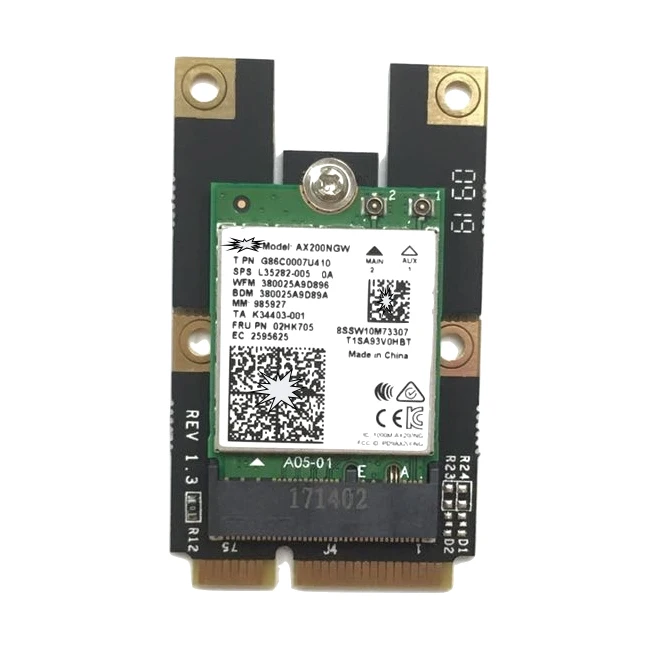 Carte Réseau Wi-fi 802.11ax, 6 Ax200, 2.4gbps, Intel 8265ngw/9260ac, M Type de réseau applicable : Gigabit Ethernet. Carte Wifi 6 Carte Réseau AX200 AX200NGW, M.2 NGFF, Wi‑Fi Et Bluetooth 5.0 Adaptateur Wifi Bluetooth Vitesse de transmission : 1300 Mbps Type : interne., Type : sans fil., Application : portable., Protocole sans fil : 802., 11ac Socket adaptateur : Mini PCI-E Type d'interface : NGFF Fréquence compatible Wi-Fi : 2,4 G et 5 G. La connexion inédite Intel Wi-Fi 6 AX200 est une solution Wi-Fi révolutionnaire permettant des téléchargements étonnamment rapides et une diffusion fluide grâce à une faible latence et une sécurité sans-fil extraordinaire AX200 AX200NGW Carte RéSeau M.2 NGFF Carte WiFi Bluetooth 5.0 WiFi 6 2... L'AX200NGW peut fournir une vitesse de téléchargement Gigabit1 et améliorer considérablement votre expérience connectée à la maison, au travail ou en déplacement. Numéro de produit : AX200NGW Couleur : vert Matériau : PCB En raison des différents lots, l'apparence et la couleur du produit peuvent varier, n'affecte pas l'utilisation Contenu de la livraison : 1 carte Wi-Fi. Vitesse jusqu'à 1730 Mbps (le routeur doit être à 160 MHz) ; le facteur de forme AX200 M. 2) : 22 x 30 mm Systèmes d'exploitation pris en charge : fonctionne uniquement sur x 64 bits, Remarque : non compatible avec Windows 7/8/8., 1., Le module prend en charge -MIMO, 2x2 canaux TX/RX avec antennes et Bluetooth 5., Non compatible avec les ordinateurs portables. La taille de l'article peut varier de +/- 1 à 3 cm. Trjgtas Double bande : 2,4 GHz/5 GHz (160 MHz)., Avec Bluetooth 5., 0, compatible avec -MIMO Interface : NGFF(M.