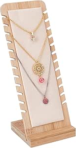 Organisateur Colliers 12 Places Porte Collier 12 Emplacements Présentoir à Collier En Bois Beige - 12 Emplacements - Surface Velours - Pour Bijoux, Boutique, Décoration - WANTOUTH Rangement Bijoux Porte Colliers Bracelets Présentoir à Collier en Bois Support Collier avec 12 Emplacements Présentoir à Collier en Bois, Présentoir à Collier Chevalet, Présentoir... Matériel:Fabriqué en bois durable et doublé de velours anti-rayures, ce support préserve l’éclat des bijoux. La base stable évite les chutes, parfait pour pendentifs délicats. Multifonction:Colliers & braceletsUtilisable comme présentoir à colliers, bracelets ou boucles d’oreilles. Le velours protège les bijoux contre les rayures, idéal pour boutique ou usage domestique. Surface veloutée et structure compacte pour un rangement élégant et sans encombrement. Idée cadeau pratique:Emballage soigné et matériaux écologiques. Offrez un accessoire utile aux amateurs de bijoux ou organisez votre propre collection avec facilité. Porte bijoux femme]Ce presentoir collier est fabriqué en bois de haute qualité, solide et durable, le milieu est en cuir, doux et délicat, il peut protéger les bijoux contre les rayures. Les coins du porte collier presentoir sont arrondis, polis à la main sans blesser vos mains, afin que vous puissiez l'utiliser en toute confiance. [Taille pratique]La base du présentoir bijoux...