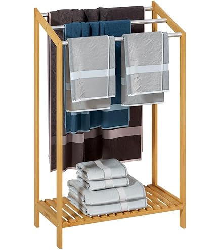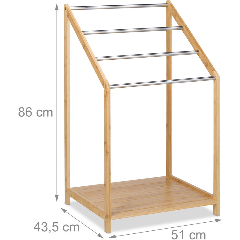 Porte-serviettes en bambou sur pied avec 3 barres Étagère de salle de... Large variété de produits Sèche-serviettes à 4 barres Pour la salle de bain et les WC invités Chic : porte-serviettes pratique en bambou et fer - Avec 4 barres pour un séchage optimal Peut être placé dans la chambre pour les écharpes 10 ans d'excellence d'entreprise Pratique : sèche-serviettes avec étagère pratique pour ranger vos accessoires de salle de bain Relaxdays Mensola per Doccia in Bambù, HxLxP: 65 x 28 x 15,5 cm, porta shampoo p Mélange de matériaux (bambou et métal) En plus, vous pourrez déposer sur l'étagère spacieuse vos accessoires de salle de bain. étagère Salle De Bain Porte-serviettes Relaxdays 10020291 Porte-serviette Bambou/Metal Nature 31 X 51 X 85 Cm Rangement Serviettes La disposition des barres assure une circulation optimale de l'air. Dimensions H x L x P : env., 87 x 60,5 x 37,5 cm Respect des standards européens Posez vos serviettes et gants de toilette sur le range-serviettes dans la salle de bain ou utilisez le comme portant dans la chambre. La surface de rangement est pratique pour ranger les serviettes propres, le papier toilette ou les chaussures Étagère spacieuse Contenu de livraison 1x porte-serviettes en pièces détachées Hauteur des barres : env., 44,5 cm ; env., 69 cm ; env., 70 cm ; env., 84,5 cm Info : dimensions du support HxLxP : env. Avec notice et matériel de montage Étagère L x P : env., 46,5 x 30 cm Polyvalent : support non fixe pouvant être placé dans la salle de bain ou les toilettes invités